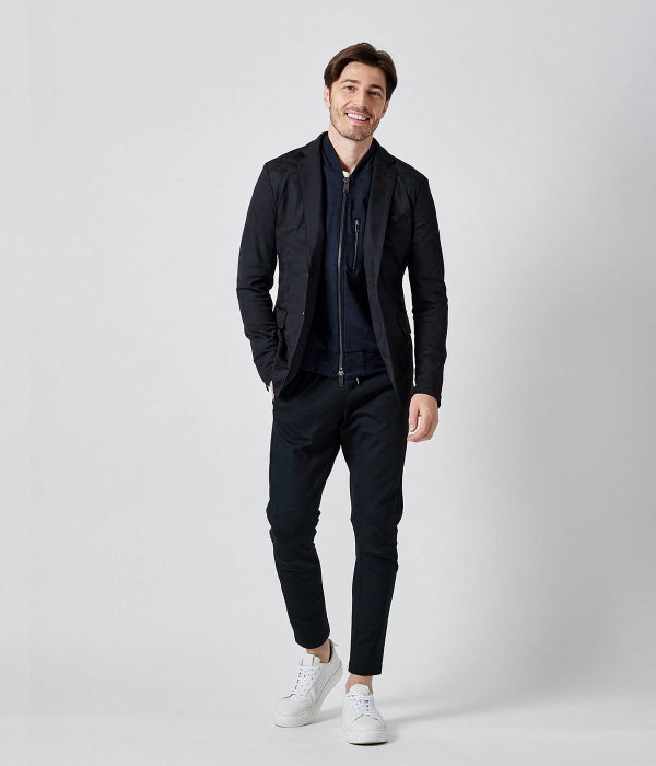 “伸びて戻る“その具合が凄く気持ち良い。まるで自身の皮膚、いやそれ以上に伸縮を補助してくれるような感覚を与えてくれるのです。 イメージで言えばスポーツ時に着るラッシュガードやスパッツ、その伸縮補助能力がジャケット・パンツに付いている。そんな感覚です。 そんな機能の素材に厚みとハリがあるのでジャケット・パンツに使えば見た目のスタイリッシュ感と高級感が出る。と言う事。