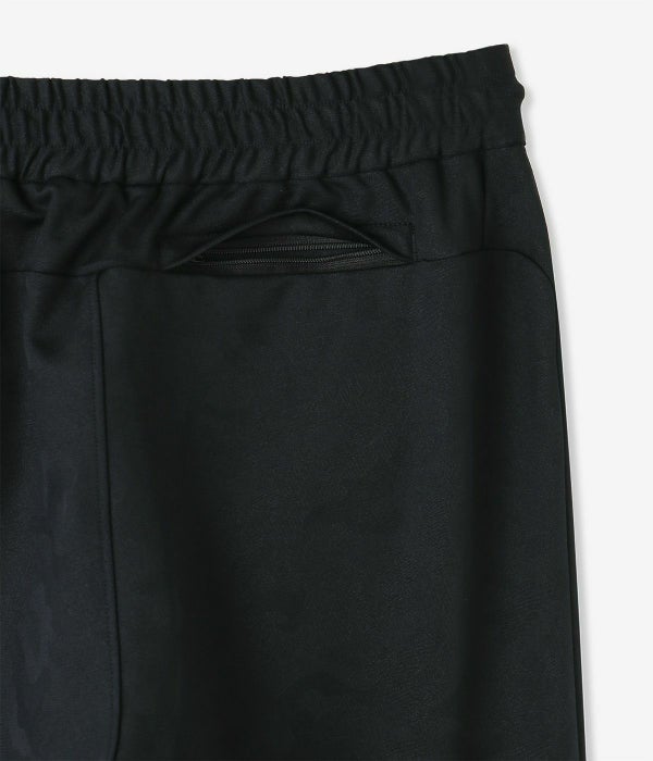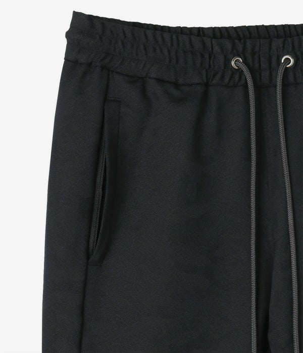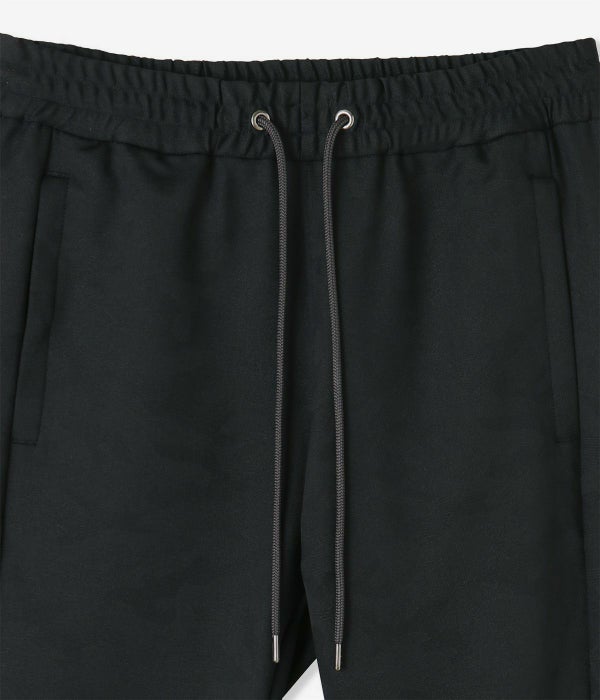 この生地自体の機能はかなり高い物です。しかし一つ問題。それはポリエステル独特の光沢感。昨今ポリエステル等の化学繊維は非常に発展し、従来の機能性に加え表情までもが天然素材に近づいて来ていて、僕も多用していますがやはり特有の安っぽい光沢感が残ってる物も多く存在しています。この生地もそう。そのまま使えば“昔の体育の先生が履いてたパンツ”みたいな表情の商品になりかねない物でした。