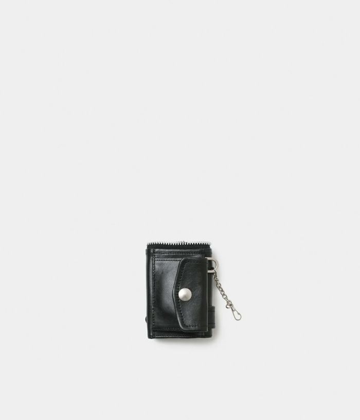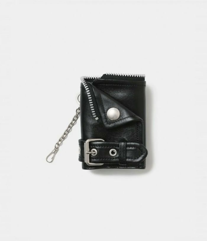 ・ライダースジャケットのディティールをギュッと凝縮したようなデザインが魅力 ・取り外しできるキーチェーンパーツ付き ・スライド式のお札入れ、カードフォルダー、コインケースが一式になったコンパクトなサイズ ・外 カードスロット×1 コインポケット×1 ・中 紙幣ポケット×1 カードスロット×2
