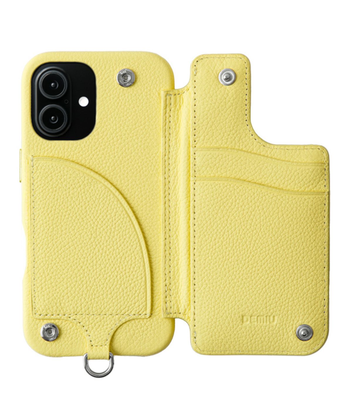 ※iPhone12 miniおよび13miniは、左側の収納ポケットと、右側の裏ポケットにはカードをお入れいただけません。右側のカードポケットは1段となります。