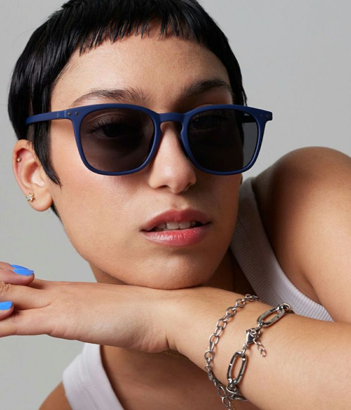強い日差しの下で読書を楽しむなど、様々なシチュエーションにおいて強い紫外線から眼を守る99.9%UVカットのカテゴリー3レンズを使用。