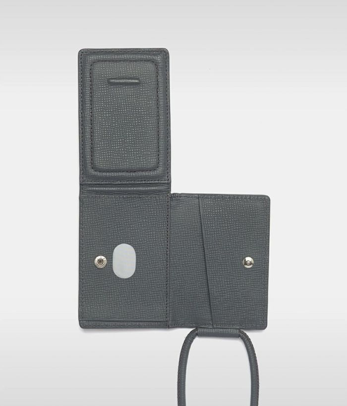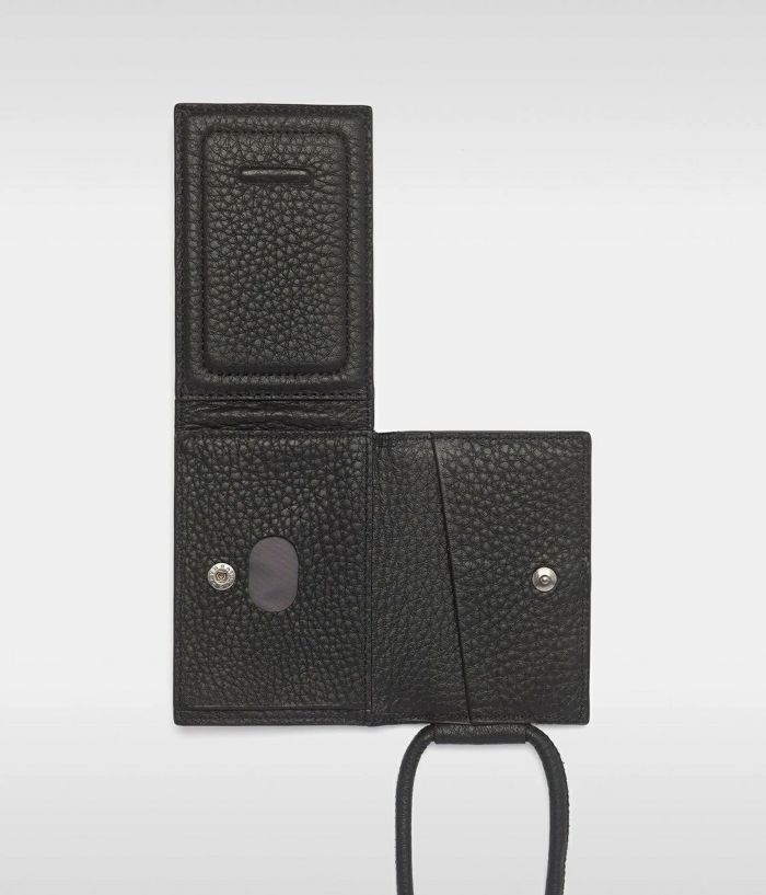 ストラップ付ウォレット ・ウォレットの厚さ:2.3cm ・紐の長さ:67.5cm(ウォレットから肩にかかる部分までの距離) ・お札入れ(合計5枚程度の三つ折り紙幣を収納可能) ・コインポケット(合計10枚の硬貨やAirTagを収納可能) ・カードホルダーx2(合計3枚収納可能)