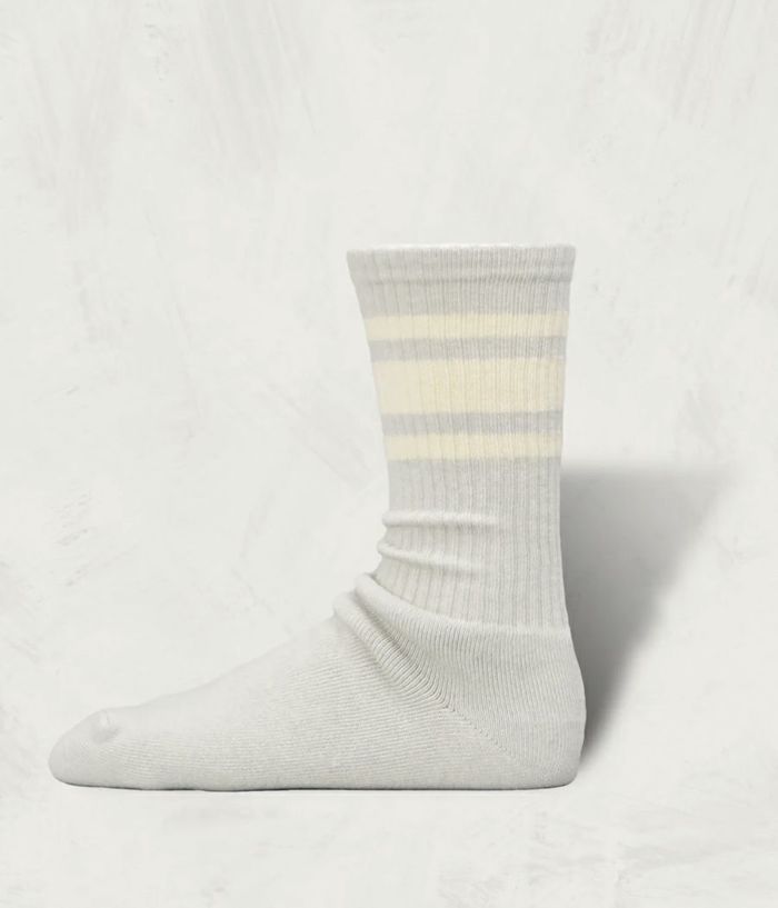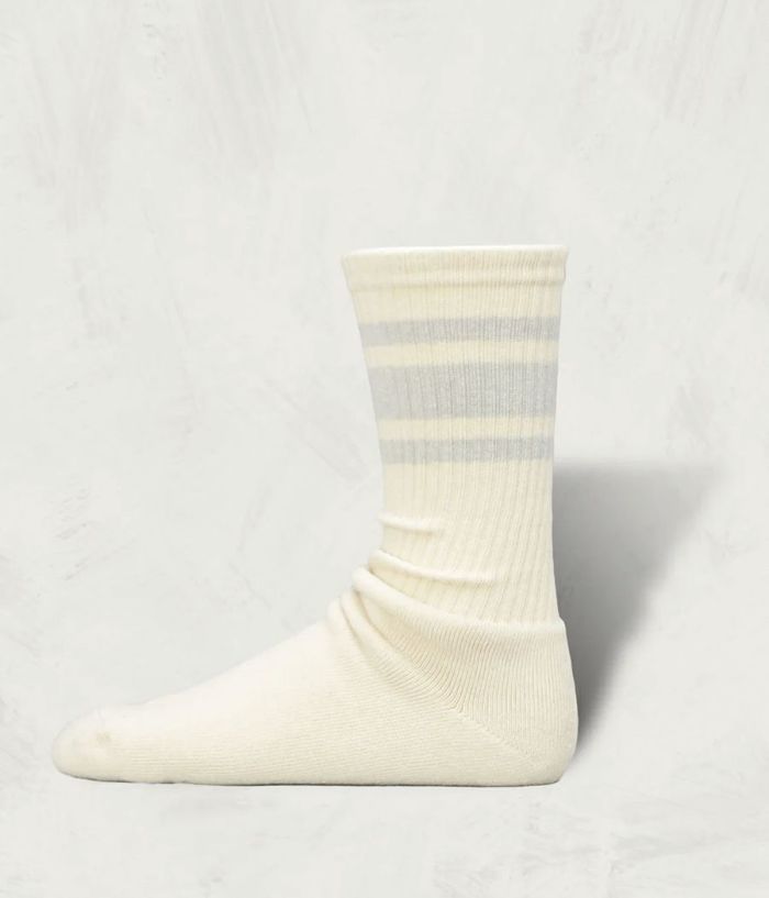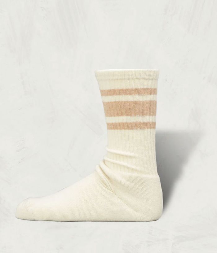 無染色のオーガニックコットンと、廃棄予定だった食材から抽出した成分 で染色したオーガニックコットンを組み合わせて編んだパステルカラーのスケーターソックス。