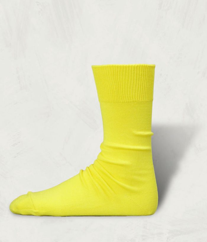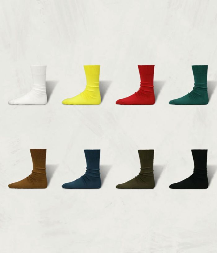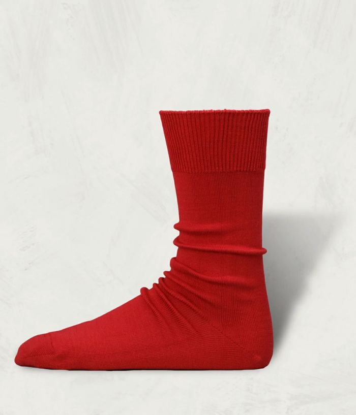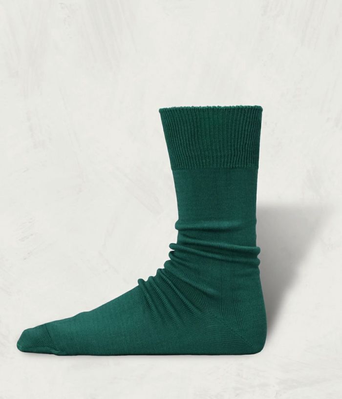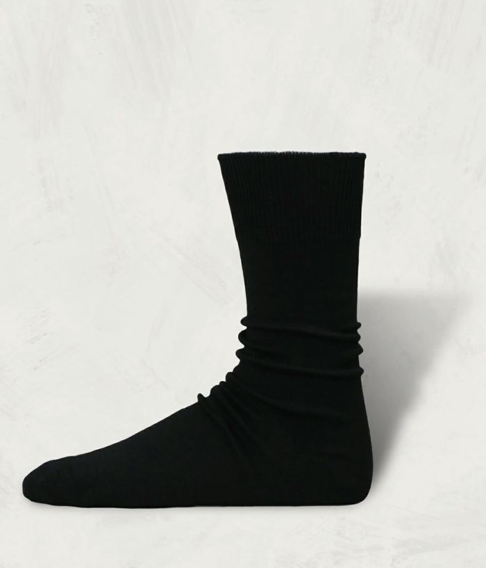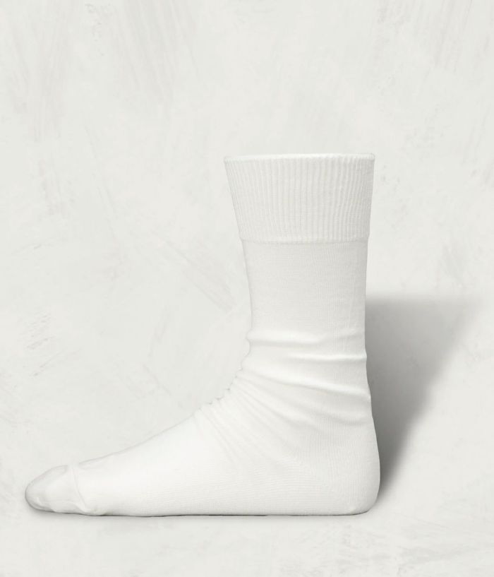 毛羽の少ない超長綿に、贅沢にも2種類のシルケット加工を施した、最高品質の綿の糸で編んだ靴下。シンプルなデザイン故に品質を追求した。