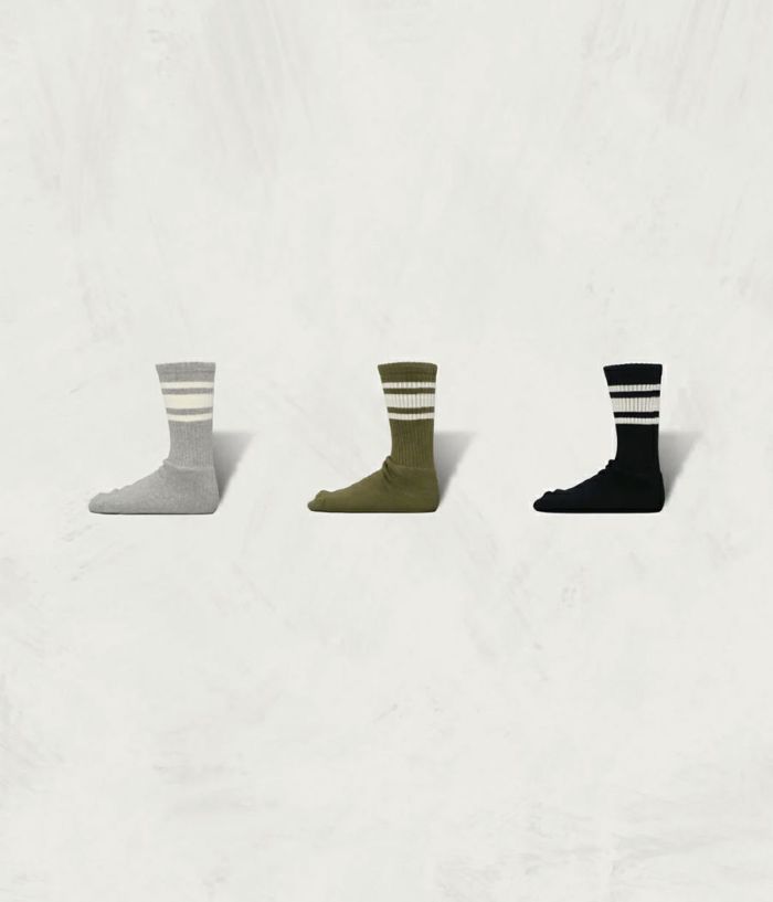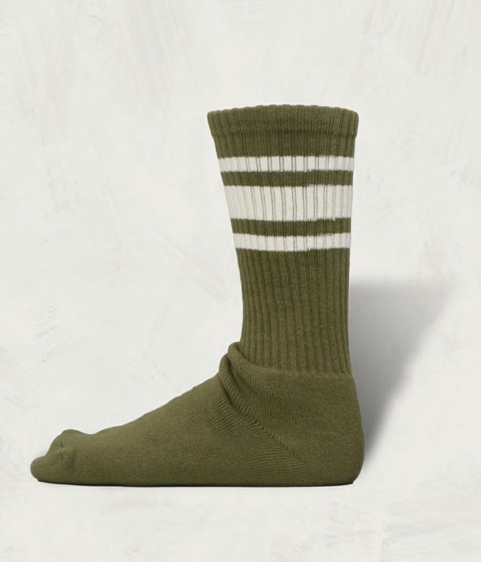 スケーターが一つのカルチャーとして成熟した80年代。70年代に主流だった19インチのハイソックスに変わり普及していったミドル丈のスケーターソックスをショート丈に作り替えた。80年代の西海岸の雰囲気に足された品質が程よい違和感を演出している。