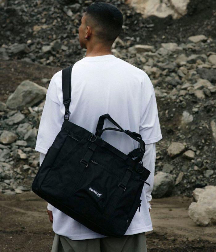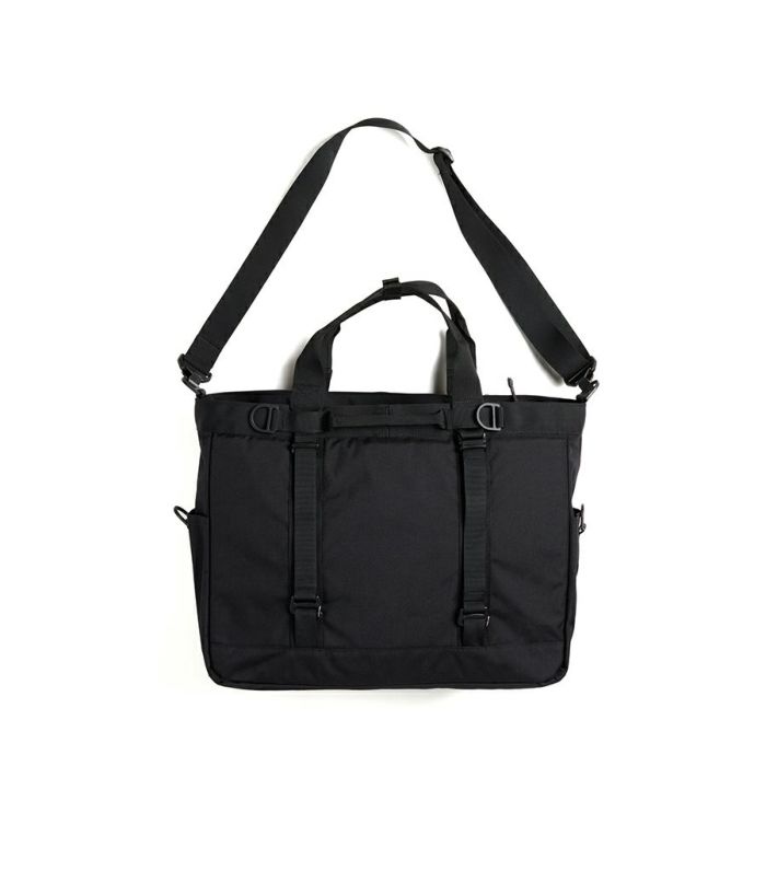 ・2022SSに発売されたTOTE BAGのアップデート版になります。 ( Ver.2 = バージョン2 ) ・前モデルよりサイズが大きくなり、容量が増えました。 ・ショルダーバックとして使用できるように、ショルダーストラップが追加されました。 ・15インチまでのノート型PCやタブレットを収納できる専用コンパートメントを備えております。収納部はクッション付きで大切な機器を保護します。 ・両サイドにはポケットを搭載しております。 ・前面部分にポケットを搭載。 ・バック本体の中に多機能ポケットを搭載。 ・ハンドルは長さを調整することができます。手持ちから肩掛けできる長さに変更可能です。様々なシーンで使い分けが出来ます。 ・表生地は表面に撥水加工を施しております。 ・裏地の裏面には AIR TIGHTNESS 加工を施しております。 気密性能を上げる為にシリコン樹脂を裏面にコーティングしております。 生地から水の侵入も防いでくれます。