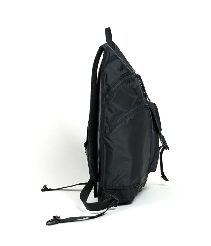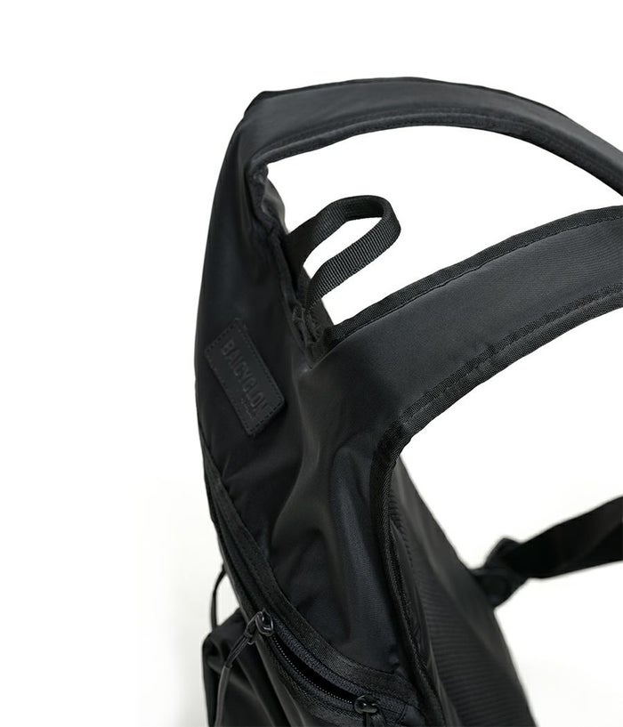 ・軽量かつ、フィット感に優れたBACKPACKです。 ・本体とショルダーストラップが一体型になっており、体にフィットするように作られております。 ・背中部分には3Dメッシュを使用して、通気性を確保しております。 ・フロントには二種類のポケットが搭載されております。 ・13インチまでのノート型PCやタブレットを収納できる専用コンパートメントを備えております。 ・フロントポケットのフラップ部分にはマグネットバックルを使用しており、取り外ししやすくなっております。 ・表生地、裏生地は撥水加工されて210D NYLONを使用しております。生地の裏面には AIR TIGHTNESS 加工を施しております。気密性能を上げる為にシリコン樹脂を裏面にコーティングしております。