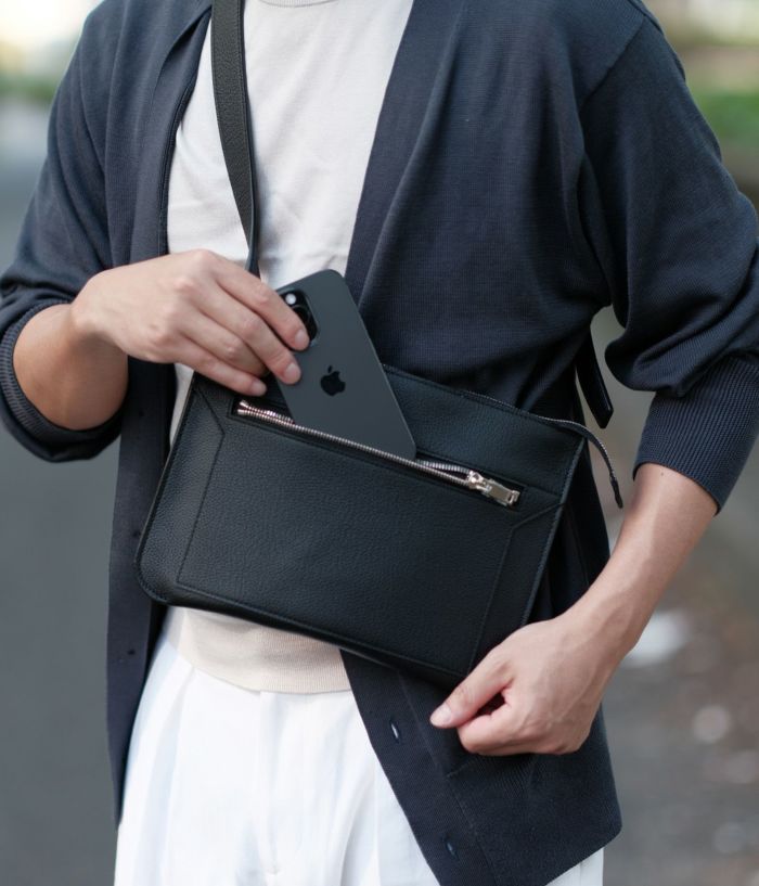 薄くてシャープなデザインながらも、ちょっとしたお出かけの際に必要なものをコンパクトに収納する事が出来る非常に便利なバッグです。