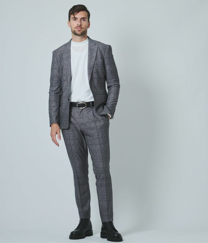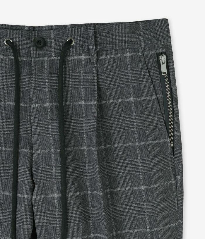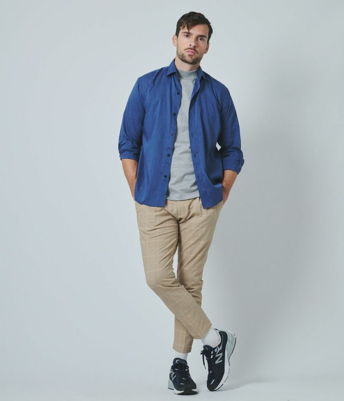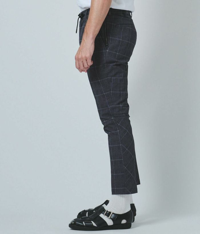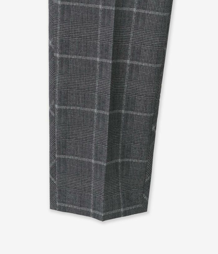 麻調チェック柄が魅力の「ONE TUCK EASY PANTS -STRETCH GREN CHECK-」