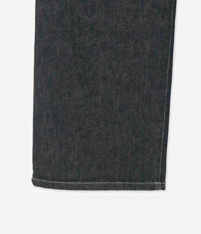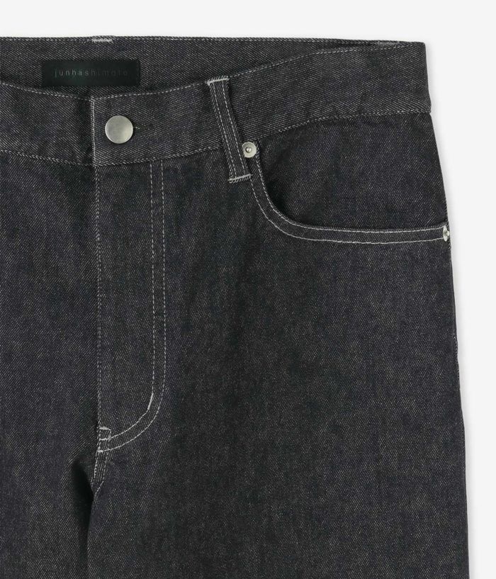 シルエットはブーツカットを現代的に整えたセミフレア。膝下にかけて自然に広がるラインが脚を長く見せ、トップスはシンプルでも“絵になる”バランスへ。色落ちの心配が少ないから、白や淡色のコーディネートにも気負わず取り入れられ、都会的な清潔感が際立ちます。