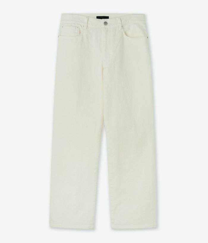 またパッと見、綿100のような硬派なデニムっぽく見えますが実はかなりストレッチの効いたデニムなのでストレスを感じることもありません。その見た目と履き心地のギャップもこちらのデニムの魅力。清潔感のあるホワイトのこのシルエットは新鮮ですが、是非40オーバーの男性に着ていただきたいです。