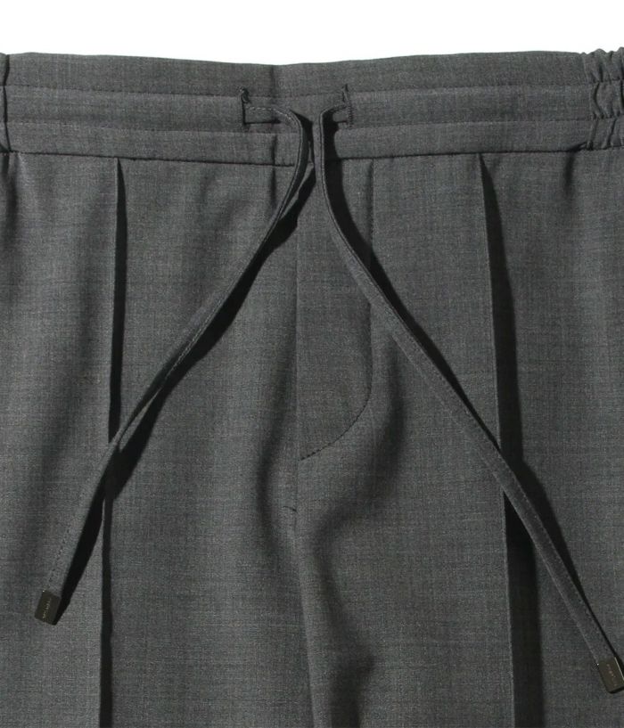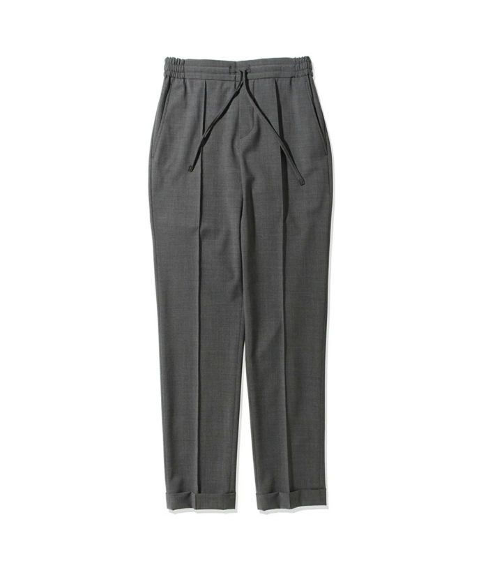 ファッションディレクター干場義雅氏の希望により、1から形を起こしたモデル名"H DUE(アッカデュエ)"から、ディテールはそのままに新素材が登場。 生地の重さは250gと軽すぎず、重すぎない絶妙なバランス。長い期間着用いただきやすく、とにかくさらっとしたドライタッチな肌触りは、高温多湿な日本の気候にぴったりなファブリックです。 ディテールの拘りは、イージー仕様にも関わらず、後ろ前に永久クリースを入れることで、きちっとした印象を損なわれずに穿いていただけます。 ウエイトは、ドローコード付きシャーリング仕様、フロントフライではなく、ノンファスナー仕様。 裾は敢えてダブルで仕上げていることにより、スポーティな印象に。 シルエットは、ワタリには程よくゆとりがありますが、裾にかけてはしっかりとテーパードを効かせた、絶妙な塩梅でパターンメイクされたシルエットが特徴。 BERWICHのインラインコレクションにはない、究極の大人なイージーパンツが完成。是非、ご堪能下さい。