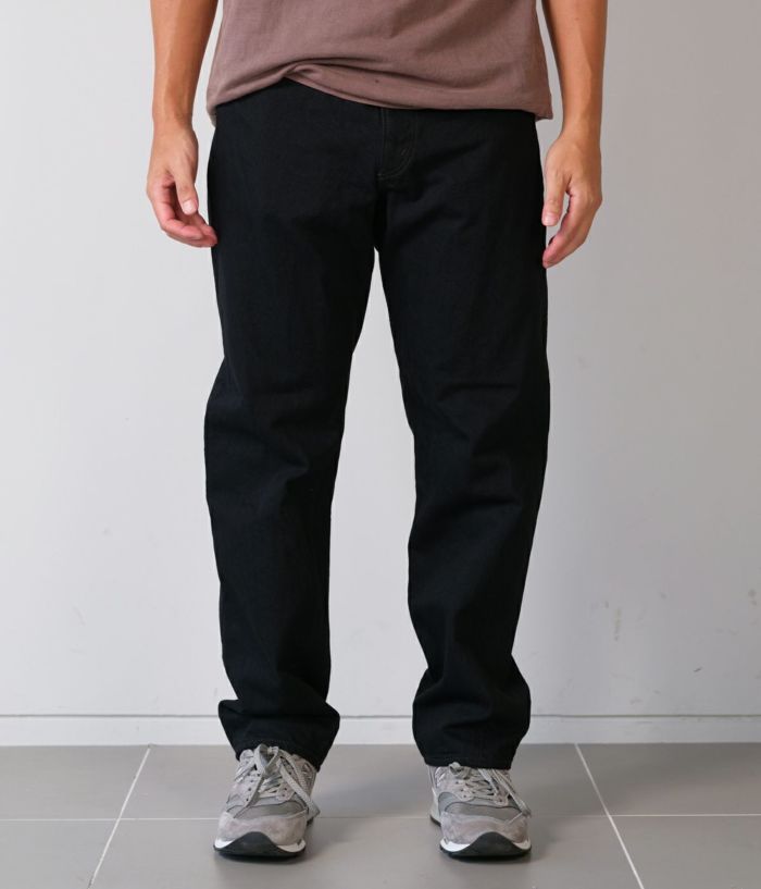 定番として展開し続けてきたテーパードモデルがフルリニューアルしました。生地は、のり抜き、防縮、斜行止め、毛焼きなどをしていない“生機”に変更。縮みやよじれが起こりますが、デニム本来の質感、経年による表情の変化を楽しめます。膝から裾にかけて緩やかに細くなったテーパードシルエットは、これまでよりもやや太めに変更。1970年代のヴィンテージジーンズをサンプリングしていて、ファスナーは42TALON、ポケット裏はシングルステッチ、バックポケットの形はやや細長いデザイン。ブラックとグレーデニムはタテ糸に硫化染料によるロープ染色の中白糸を使用。ヨコ糸はどちらも超長繊細綿・スビンコットンを使い、旧式力織機(シャトル織機)でセルビッチデニムに仕上げています。