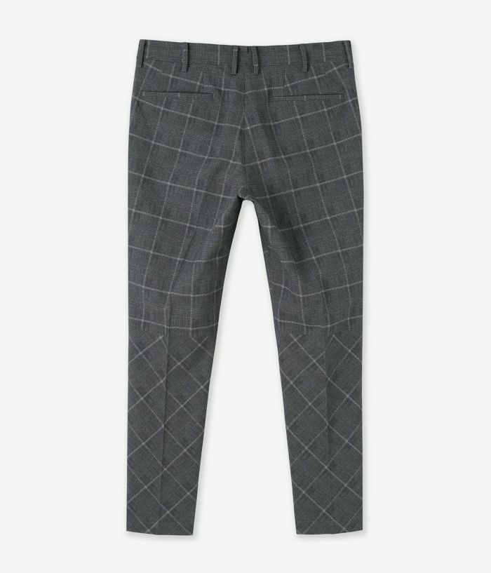 麻調チェック柄が魅力の「ONE TUCK EASY PANTS -STRETCH GREN CHECK-」
