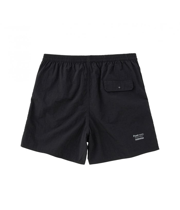 PMDのスタンプ風ロゴをプリント。グログランクロスを使用した、バーサタイルなナイロンイージーショーツ。
