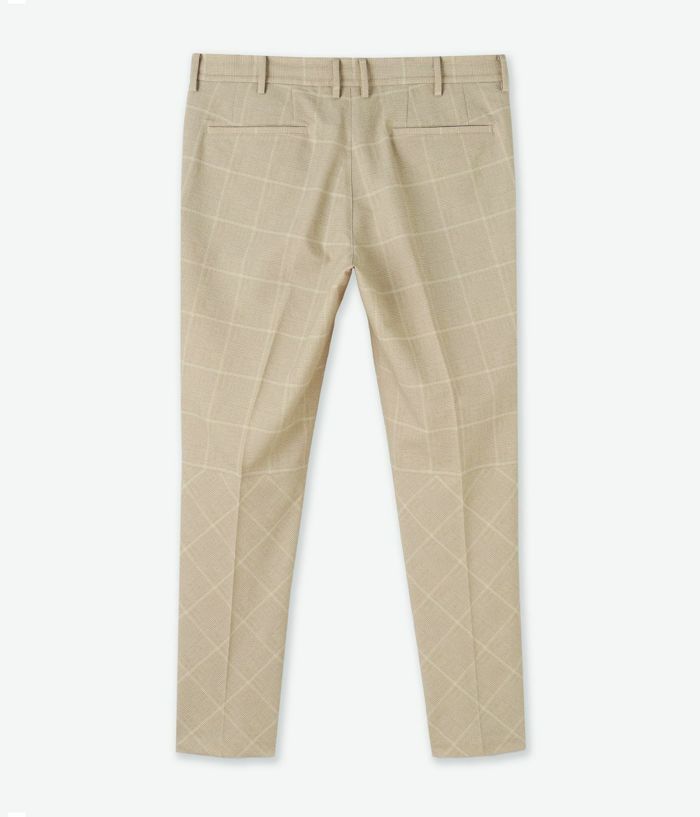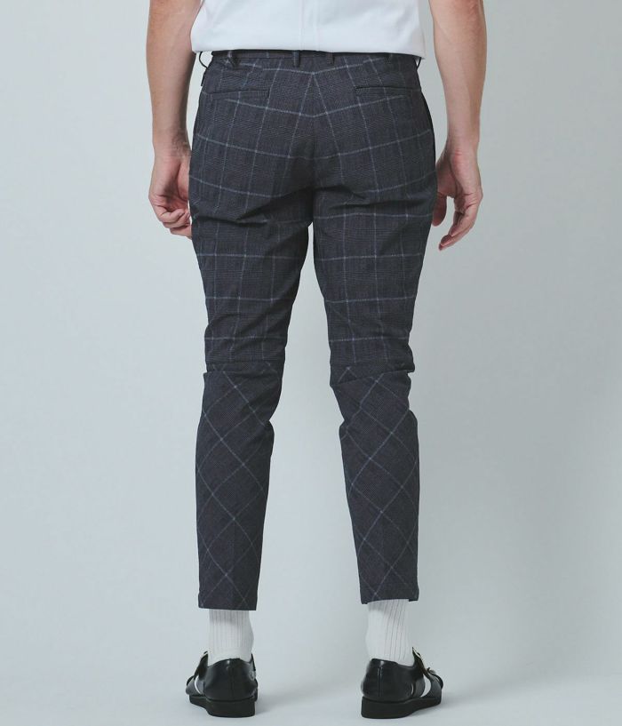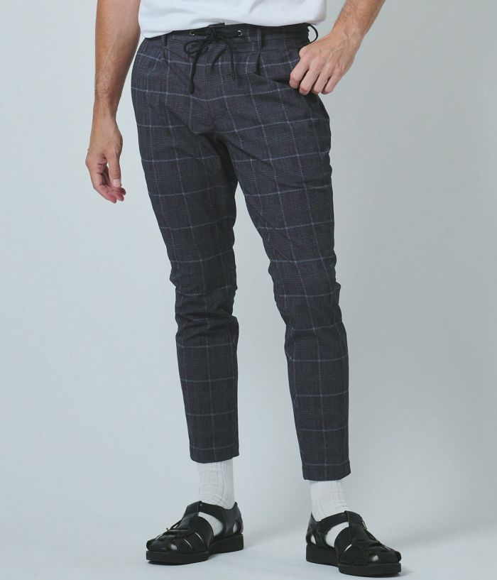 麻調チェック柄が魅力の「ONE TUCK EASY PANTS -STRETCH GREN CHECK-」