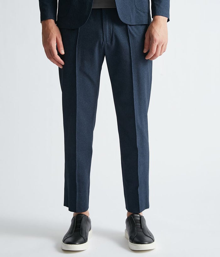 メッシュ調の高機能素材を採用し、優れた通気性と快適性を備えたセットアップパンツ。