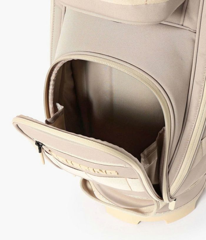 本体からパーツまでワントーンでまとめた、洗練されたニュートラルカラーが印象的なキャディバッグ。やわらかな色合いがゴルフスタイルに自然に溶け込み、上品で落ち着いた存在感を演出します。口径8.5型のコンパクト設計ながら、大小あわせて13箇所のポケットを装備。取り回しの良さと十分な収納力を兼ね備えた、機能美あふれる一本です。