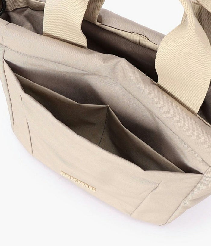 -洗練されたミニマルな設計- ・ステッチを表に出さないクリーンなデザインを採用し、軽やかで扱いやすい仕上がりに。 ・ラウンド中の動作を妨げないよう、取り出しやすさに配慮したフロントポケットを配置。 ・取り外し可能なショルダーベルト付きの2WAY仕様。シーンに応じて手持ち・肩掛けの使い分けが可能。 ・マチ幅約130mmを確保し、必要なアイテムを効率よく収納できる設計。 ・天井ファスナー付きで収納物をしっかりカバーし、移動時も安心。 環境配慮と機能性を両立する素材- ・RPET(再生ポリエステル)を使用した高密度オリジナルファブリック。 ・シャリ感のあるドライな風合いと奥行きのある発色。 ・高密度織りによる耐久性と撥水加工で雨天時のラウンドにも対応。