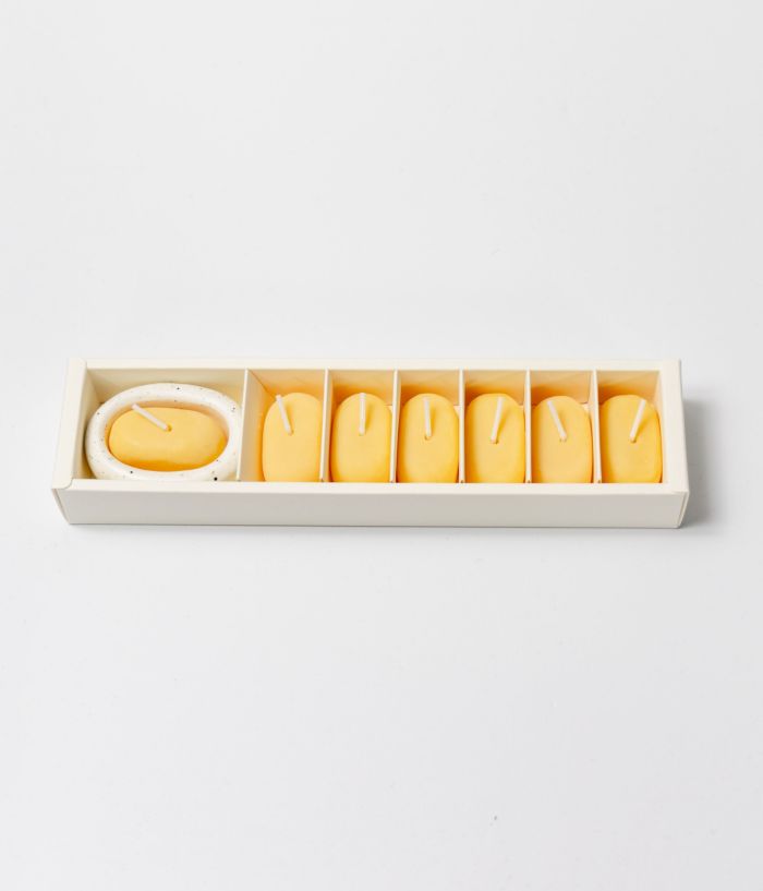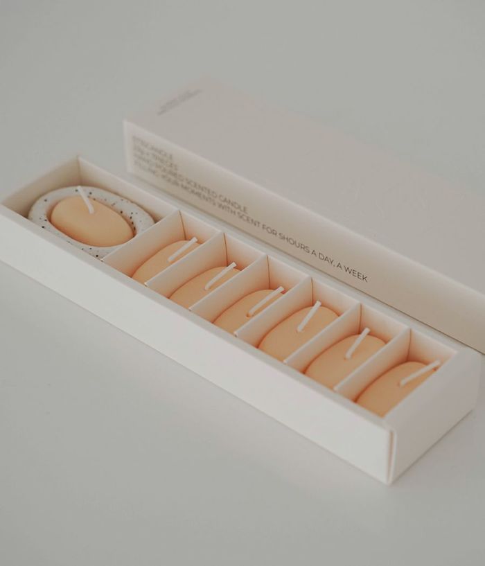 「一日5時間、暖かい香りであなたの瞬間を満たします」 "Filling your moments with scent for 5hours a day, a week" 1日5時間、そして1週間、35時間が使える7つのキャンドルと専用ホルダーで構成されています。キャンドルは植物性ソイワックスと最高級香料を利用して製作します。人為的でない自然の香りを込めて、快適に香りを楽しむことができます。 パッケージに構成されているキャンドルを使い切った後は、詰め替えキャンドルを個別に購入して使用していただければ、永久にホルダーを使用することができます。 1日1回、ろうそくを灯す瞬間だけは、完全な休息の時間になりますように。