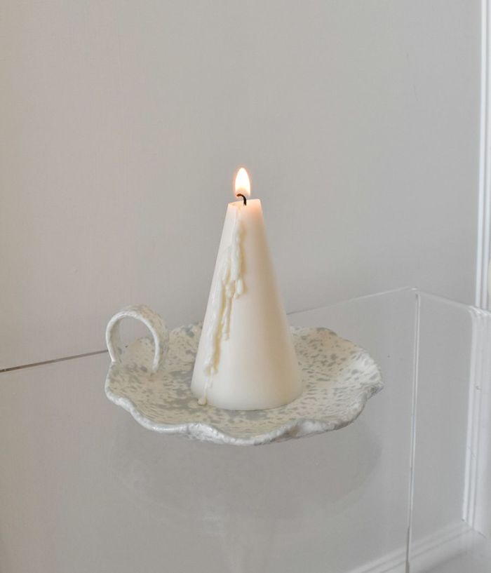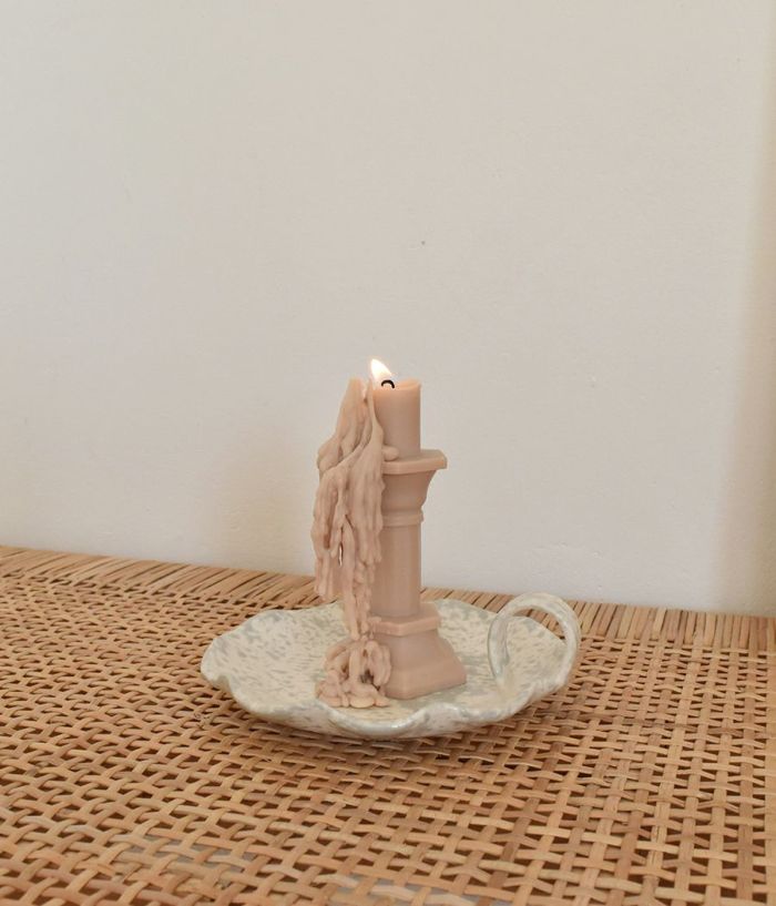 5735 Candle & Holder Gift Set Oatmeal stone version