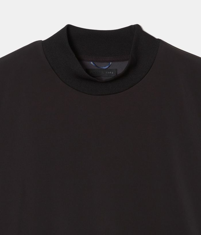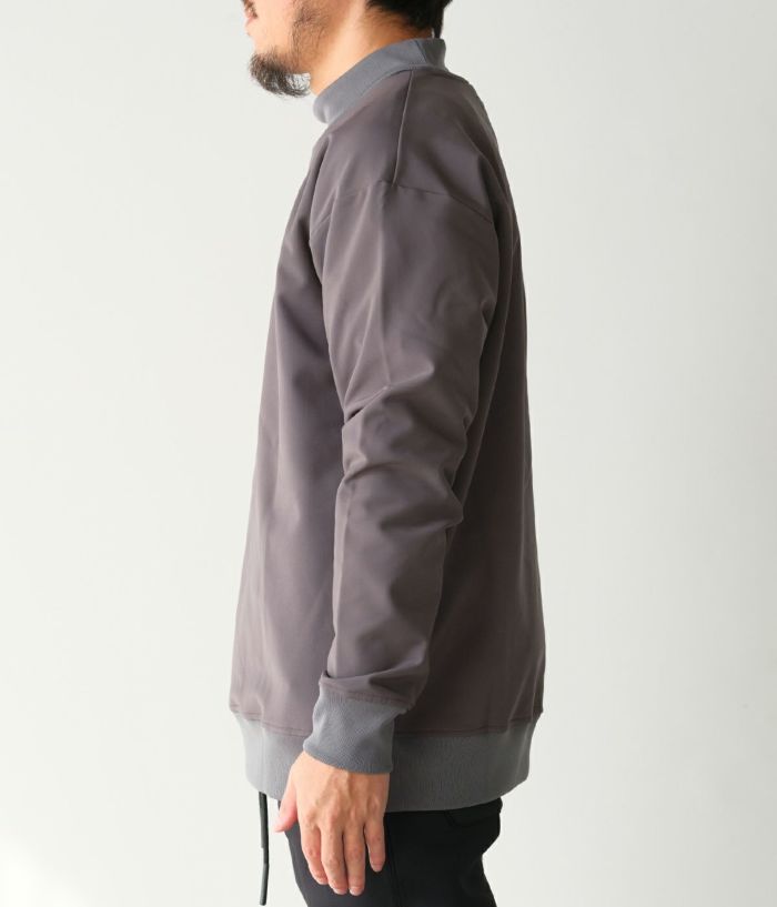 極薄のポリPuのストレッチタフタとストレッチジャージをボンディングし、肌に当たる内側に起毛をかけ着心地をアップさせたAWにおすすめの素材。