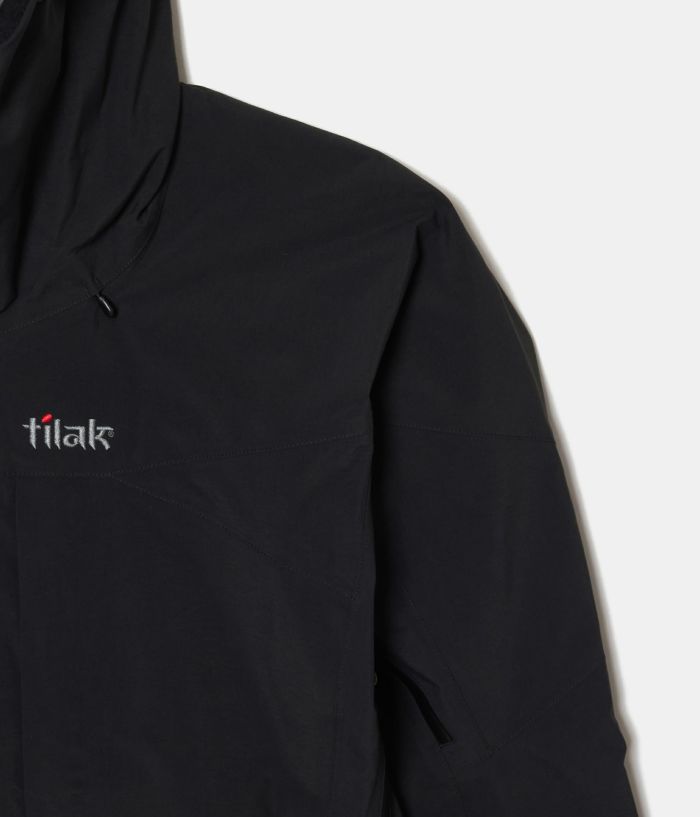 エボリューションジャケットはTilakのフラッグシップモデル。 アイスクライミング用として制作され、他のモデルでは補強用のファブリックとして採用されているGORE-TEX Pro 70デニールを全面に採用した超ハイスペックなモデルです。