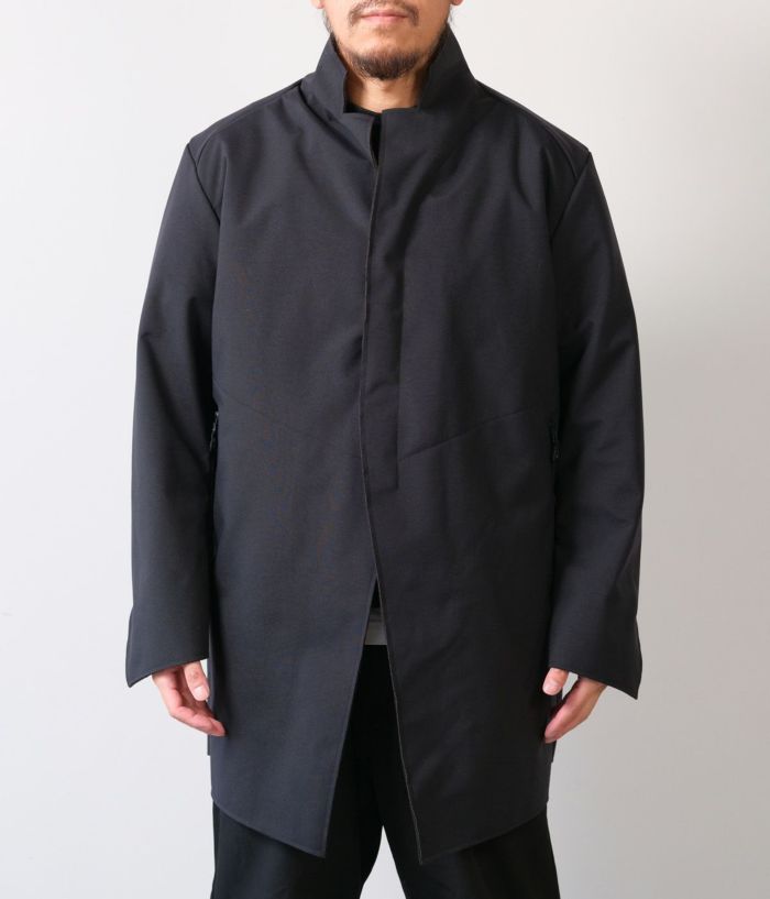 表にタスランナイロン糸を使用した3層ラミネートの素材。(耐水圧196kpa以上 透湿性8,000g/㎡-24hrs以上。) ハードな天然素材のようでありながら機能性を兼ね備えたハイブリットな素材で透湿防水サイトス加工が施されている。 内側にはフリースを使用し、非常に軽くて暖かい。 太すぎず、細すぎない美しいシルエット。 着用モデル:176cm 62kg 着用サイズ:M