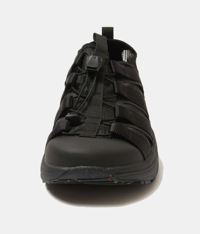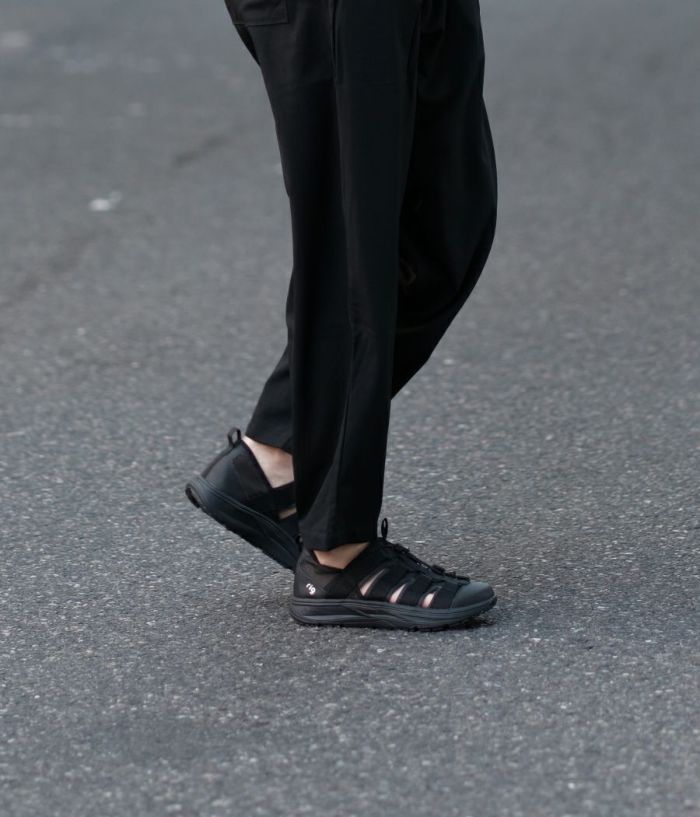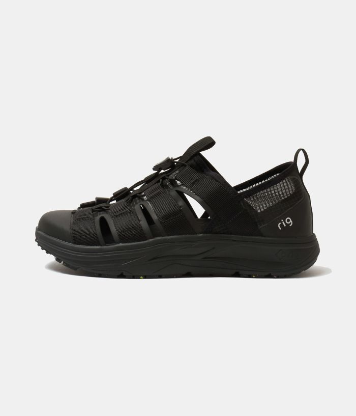 rigのリカバリーシューズは衝撃吸収性が非常に高く足腰のストレスを開放して疲労の回復を促します。特に立ち仕事や運動後などは翌日に疲れを残さないよう足を最大限にリラックスさせます。また、硬質サンダルに比べて足腰への負担が軽減されるため腰痛持ちやヘルニアの方の普段履きにも適しています。 moja 2.0(モージャ)はアッパー素材にDYNEEMA MESH RIPSTOPを使用することで、耐久性を向上させました。通気性抜群なスリッポンタイプ。ゴムベルトを縛り甲幅を調整でき、ヒール部分を踏みスライドサンダルとしても使用可能です。