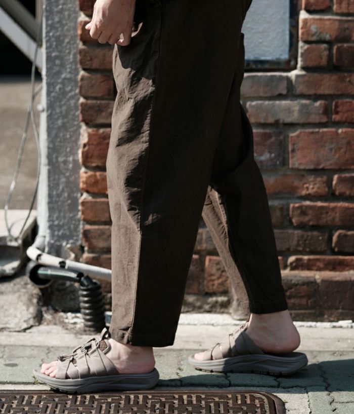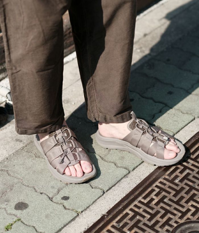 rigのリカバリーサンダルは衝撃吸収性が非常に高く足腰のストレスを開放して疲労の回復を促します。特に立ち仕事や運動後などは翌日に疲れを残さないよう足を最大限にリラックスさせます。また、硬質サンダルに比べて足腰への負担が軽減されるため腰痛持ちやヘルニアの方の普段履きにも適しています。 スライドタイプの Wadu( ワドゥ) は甲部分を 6 本のナイロンテープをゴム紐で結んでいるので、アクティブな動きやどのような足形でもフィットします。