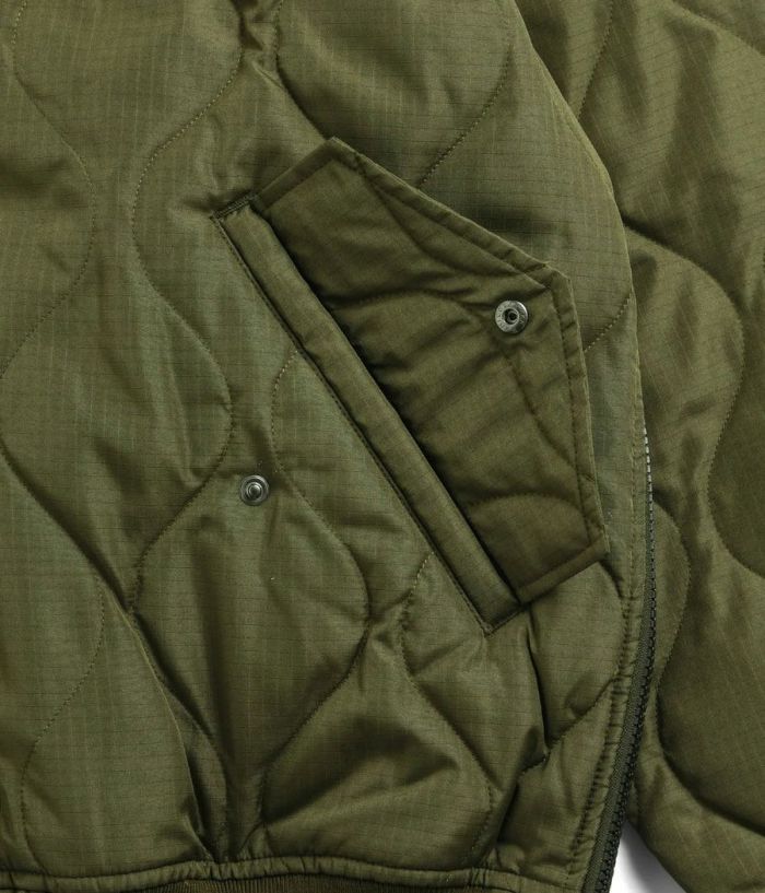ヘチマキルトのダウンステッチが、ミリタリー感を演出。