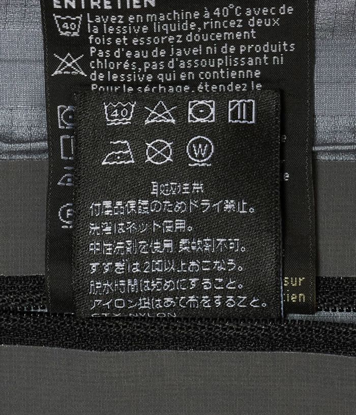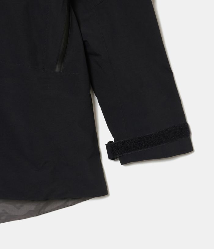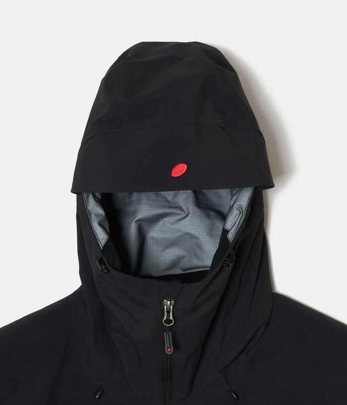 ファブリックにはGORE-TEX Pro3レイヤーを採用。 表地には強度のある70デニール生地を採用し、 裏地には軽量で耐摩耗性と透湿性に優れた生地を、 中間層には要の画期的でユニークな微細構造を持つ100% ePTFE 多層構造メンブレンを採用したファブリック。GORE-TEX Proファブリクスで設計されたガーメントは、最高度の丈夫さを追求。あらゆる過酷な環境や厳しい気象条件下での活動を想定している。モデル名は背面ヒップ部分に刺繍。フロントファスナーはAquaGuard Vislon(YKK)を採用。