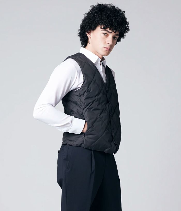 特にスーツのインナーベストとしてお使い頂ければと思います。いくつかダウンベストがある中コンサバな雰囲気でカジュアルすぎないモデルをセレクトさせて頂きました。