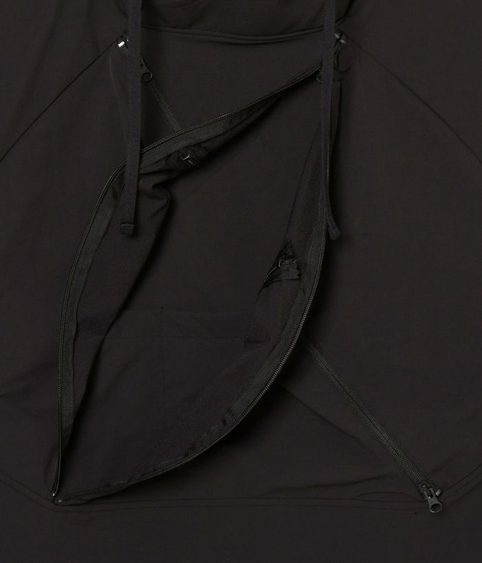 フロントの大胆なZIPポケットはインサイドポケットにもアクセス出来、又ZIPを開けた時の美しいシルエットもデザインされている。