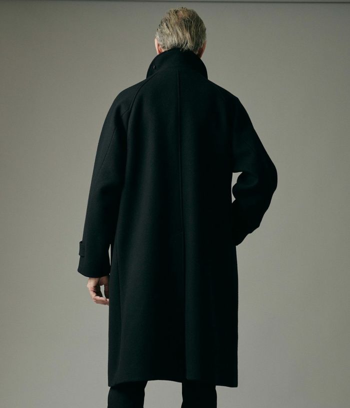 クラシックな雰囲気と洗練されたミニマルデザインが融合した"MELTON BALCOLLAR COAT"。