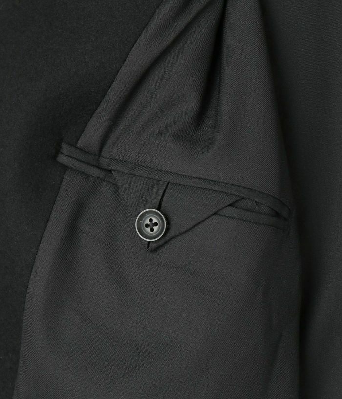 比翼仕立てのフロントは、無駄のないクリーンな印象に。袖口にはボタン付きタブを施し、細部まで丁寧に仕立てられています。 スタイルを選ばず合わせやすいシンプルなデザインで、ニットやスーツの上から羽織ってもバランスよく決まります。