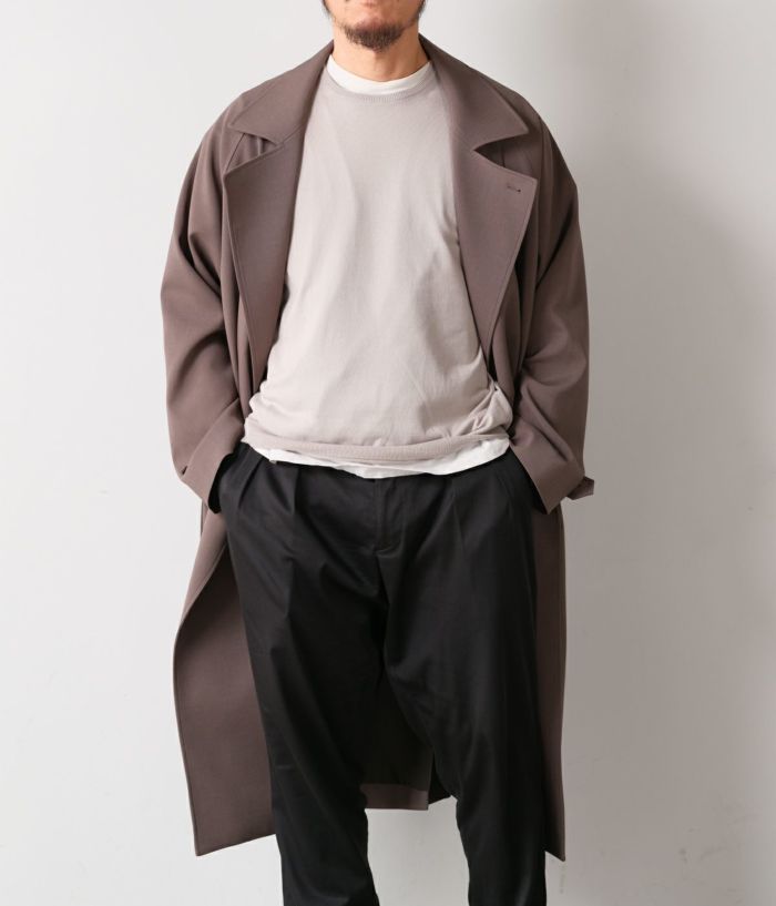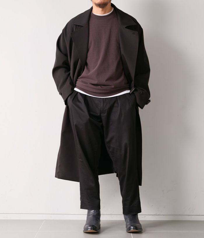junhashimotoでは定期的に展開される形のコートでリリース当初は大きめのサイズ感に敬遠される方もいましたが、着てみると「思った以上にいいね!」という声も多く年々ファンが増えてきているモデルです。