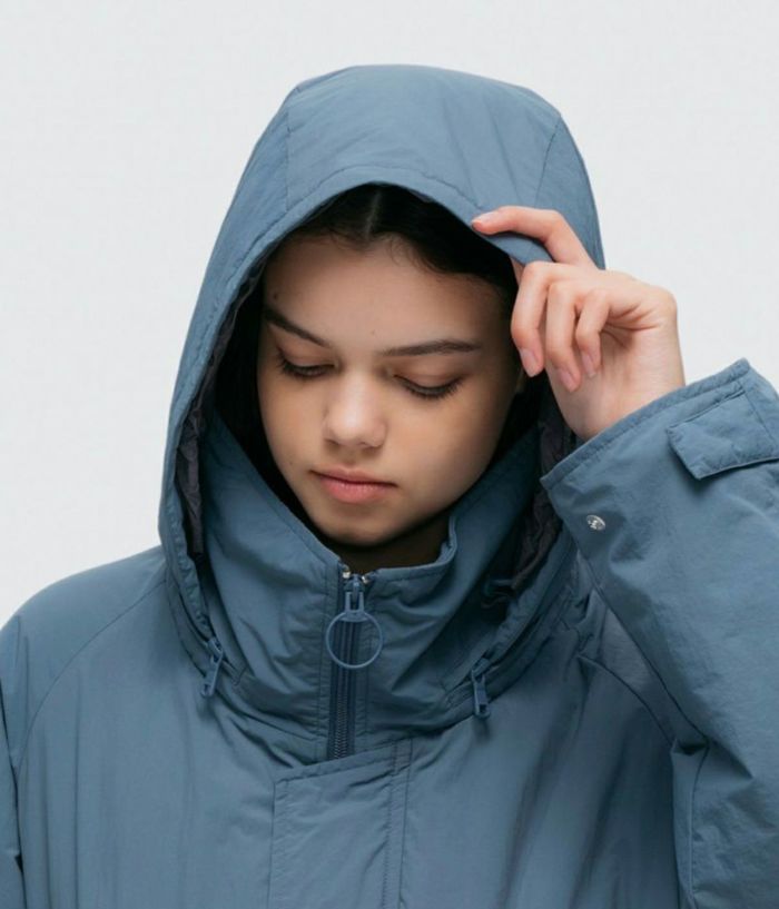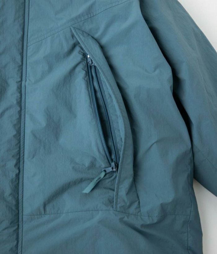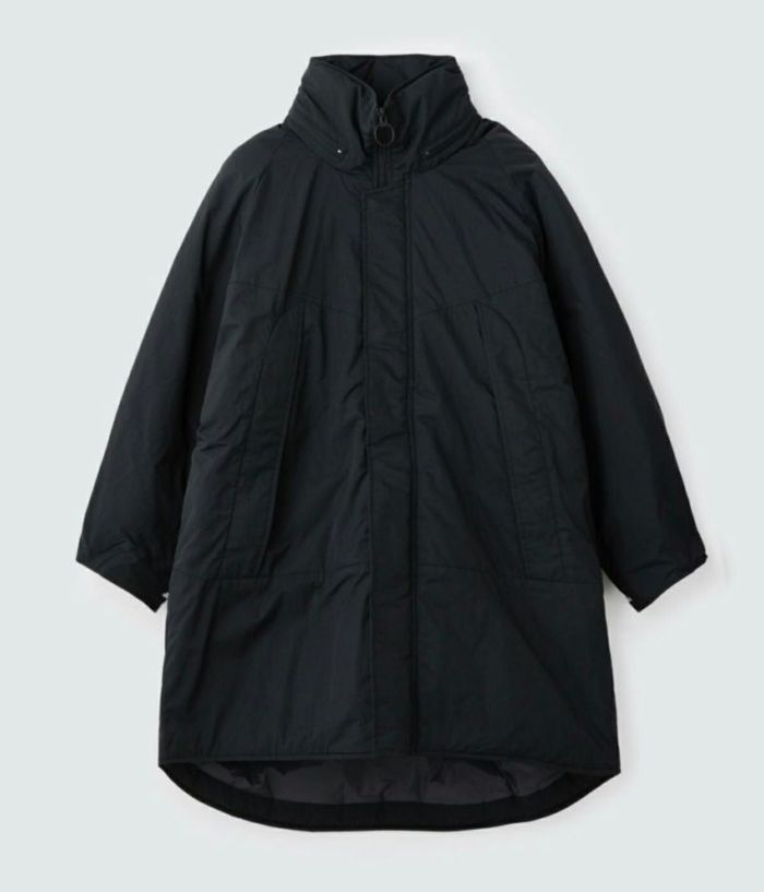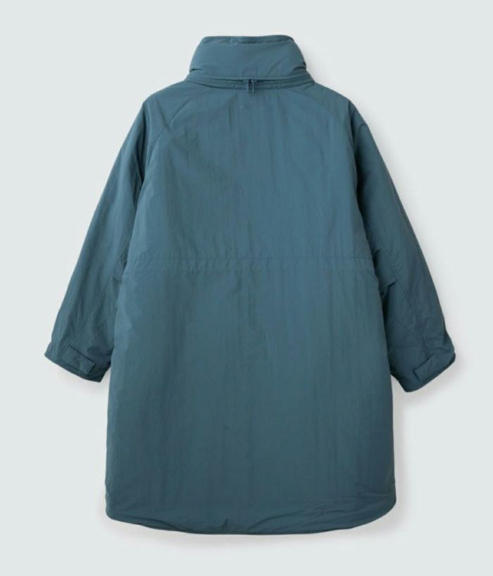 腕のベルクロワッペンもなくし、前ファスナーのスライダーをリング型にすることでミリタリー感を軽減。 袖口リブのインナーカフスが風の侵入を防ぐ。 ロゴも主張を控え、後ろ身の衿下に生地と同色でプリント。 近年の日本の気候や、レイヤードのし易さ、収納性に配慮し中綿量を調整することで、オーバーサイズながら膨らみすぎないスッキリしたシルエット。 ウエストはドローコード採用でシルエットの変更が可能。