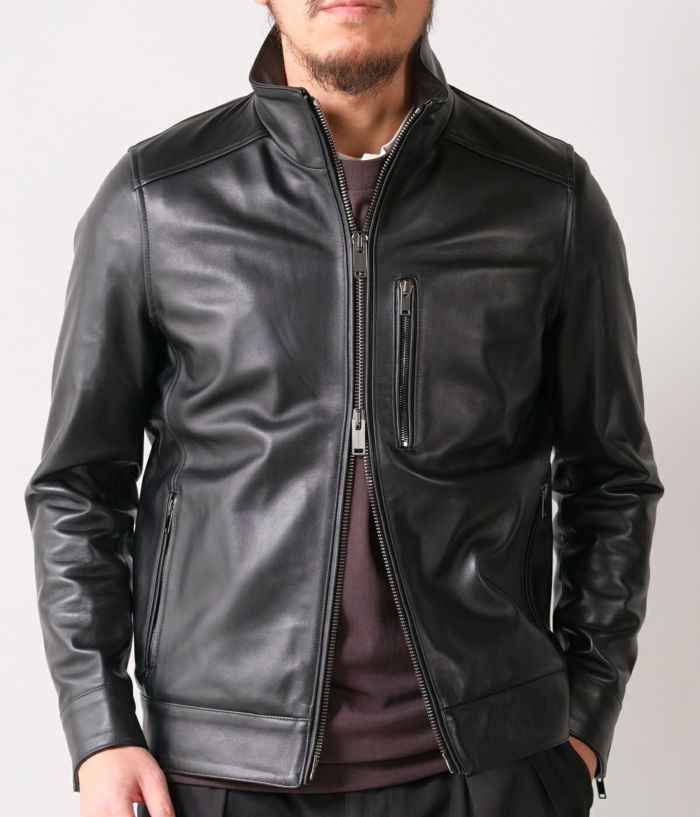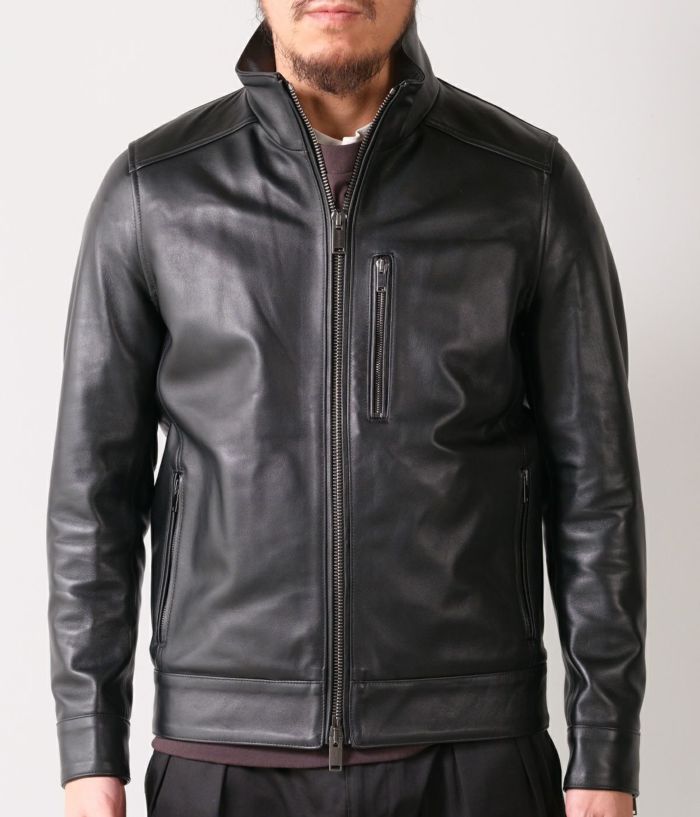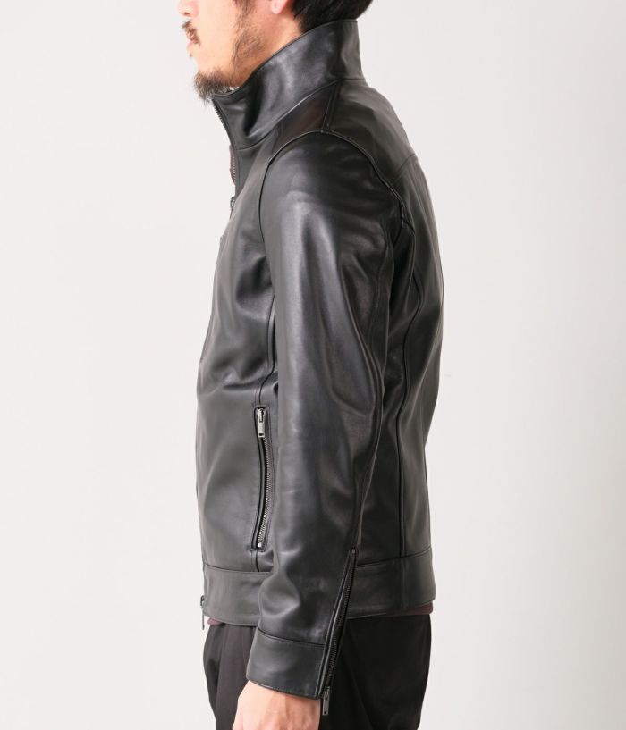 無駄を削ぎ落としたシングルライダースのミニマルなデザインにより、インナー使いからアウターとしての着用まで幅広く対応。タイトすぎず、すっきりと身体に沿うシルエットは、ジャケットやコートの下にも収まりが良く、スタイリングを選びません。シンプルながら、上質なレザーの存在感が際立つ一着です。