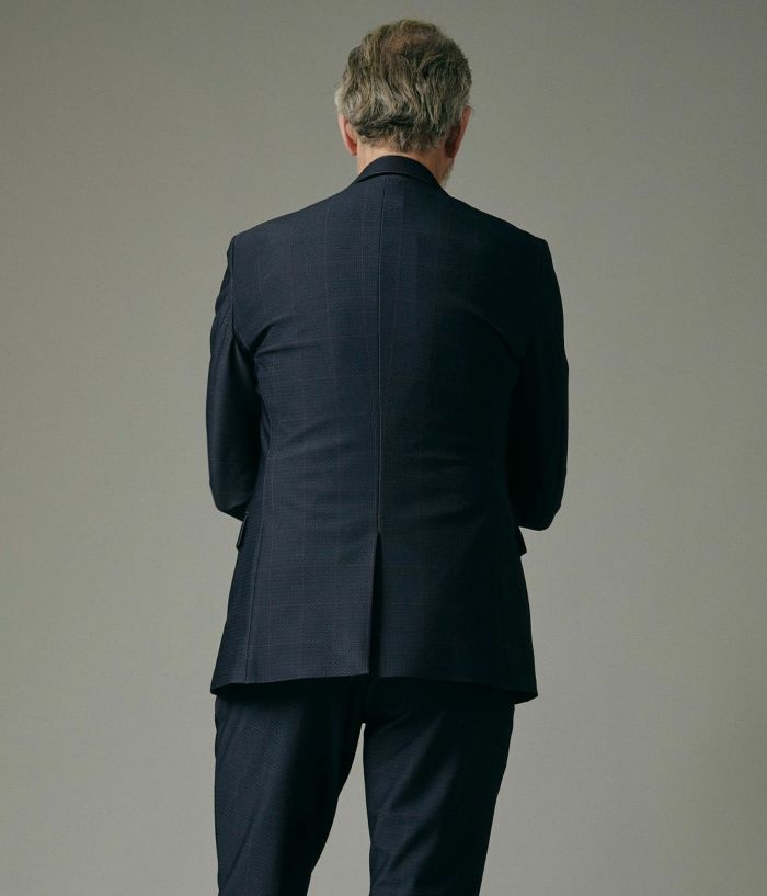 ノッチドラペルを採用し、オン・オフ問わず着用できる汎用性の高いデザインです。総裏仕様ながら、裏地には吸水速乾性に優れた素材を使用し、通年快適に着られる仕上がりです。