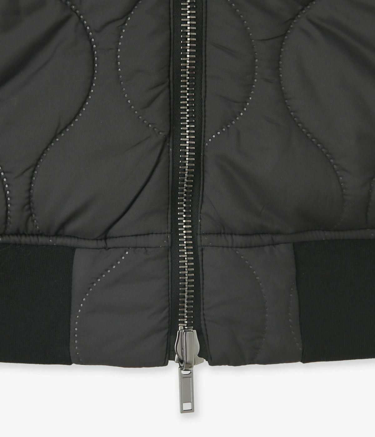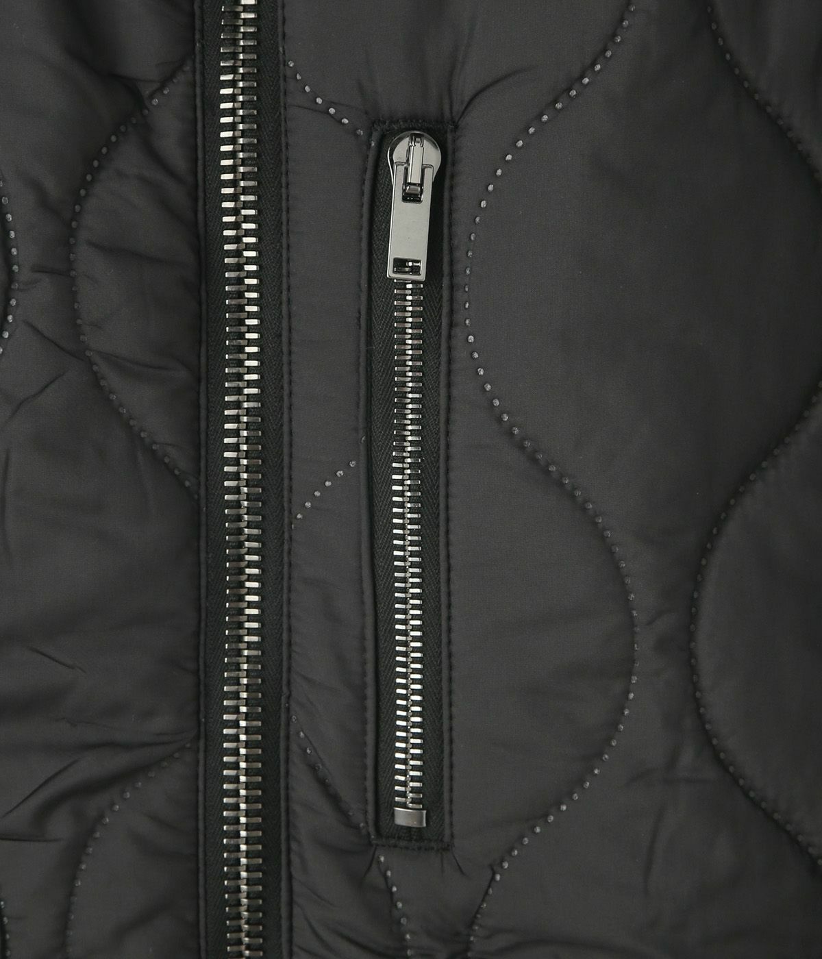 素材には、50d・144フィラメントのマイクロファイバー糸を使用した高密度タフタを採用。見た目の軽さに反して頼もしい撥水性と防風性があり、糸の収縮差によって生まれる自然なストレッチが、動きにしなやかに寄り添います。さらに特殊加工によって縫わずにキルティング柄を表現しており、針穴のないクリーンな仕上がりが特徴。風を通しにくく、中綿の吹き出しも防いでくれるという、大人に嬉しいディテールです。手触りも滑らかで、見た目にも上品な光沢が漂います。