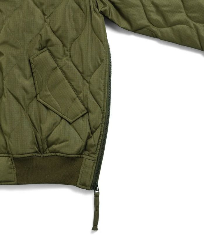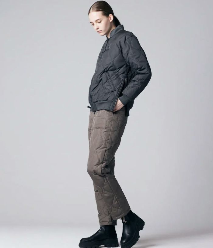 ヘチマキルトのダウンステッチが、ミリタリー感を演出。