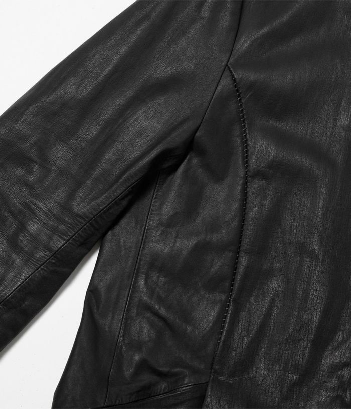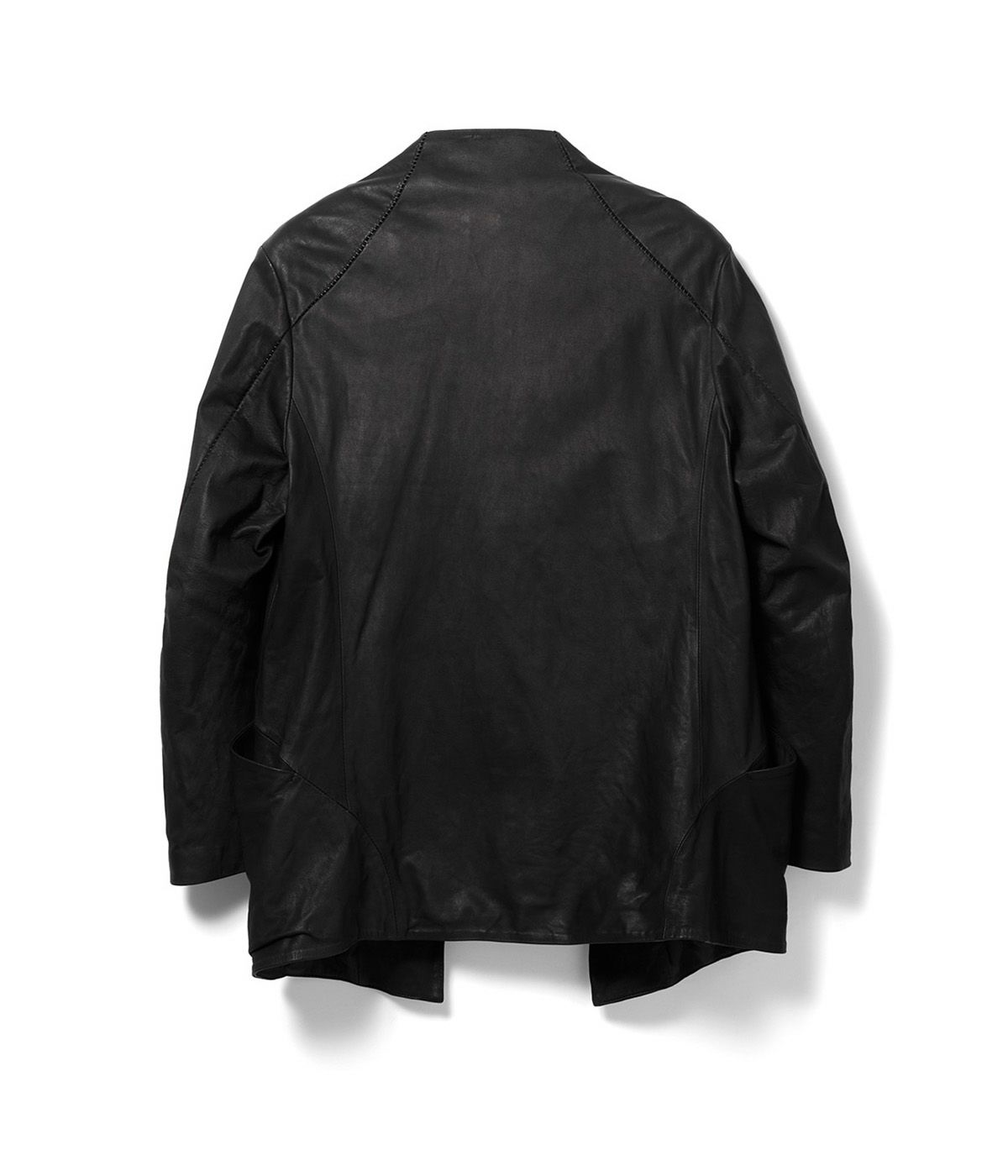 国内の牛原皮を使用し、ソフト鞣しの後、仕上げは顔料を一切使わずに染料のみで染革したRIPオリジナルレザー。とにかく馴染みやすい革で、着用する度に程良い微光沢が生まれるのも人気の特徴。ネック裏からアームに沿ってのステッチもワンポイントで◎