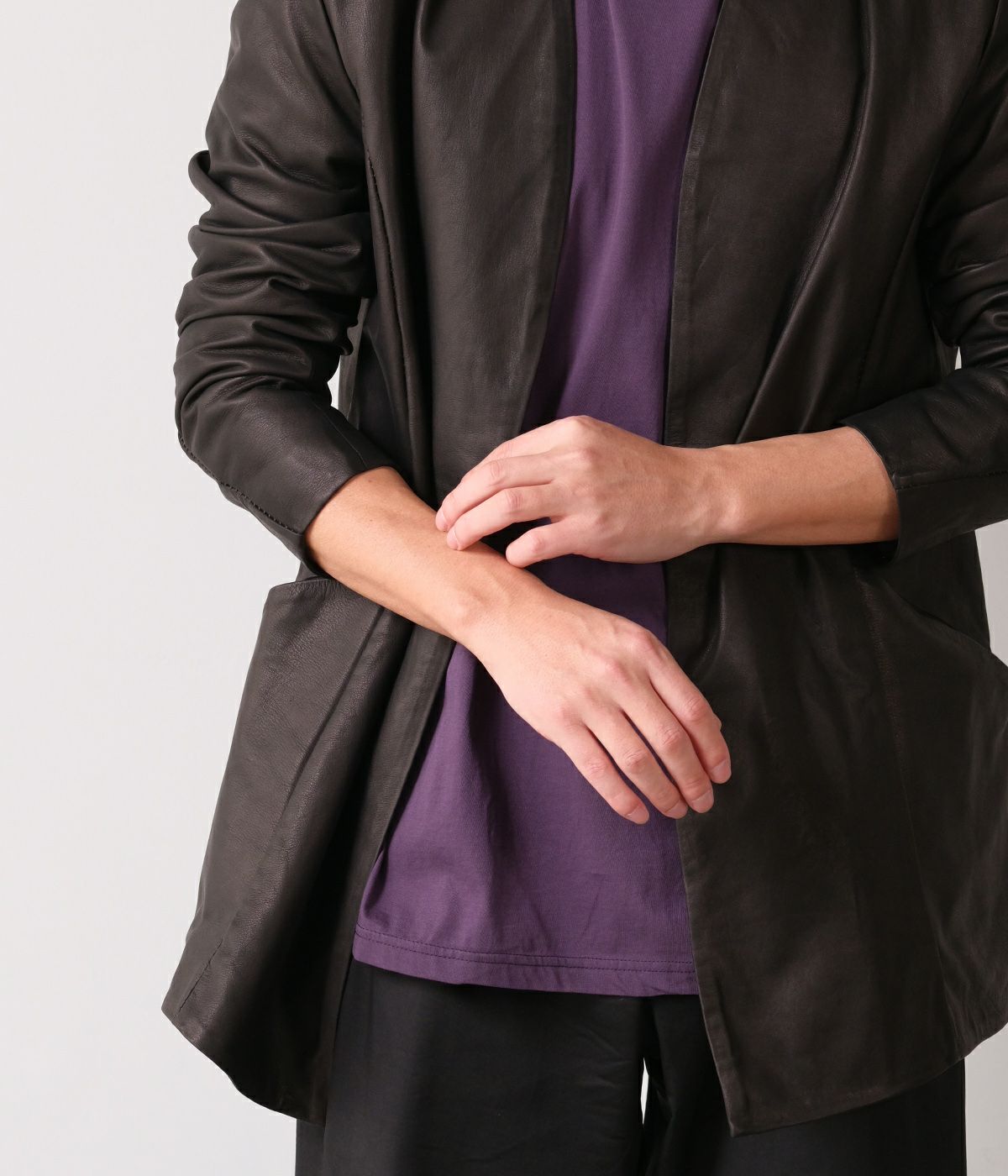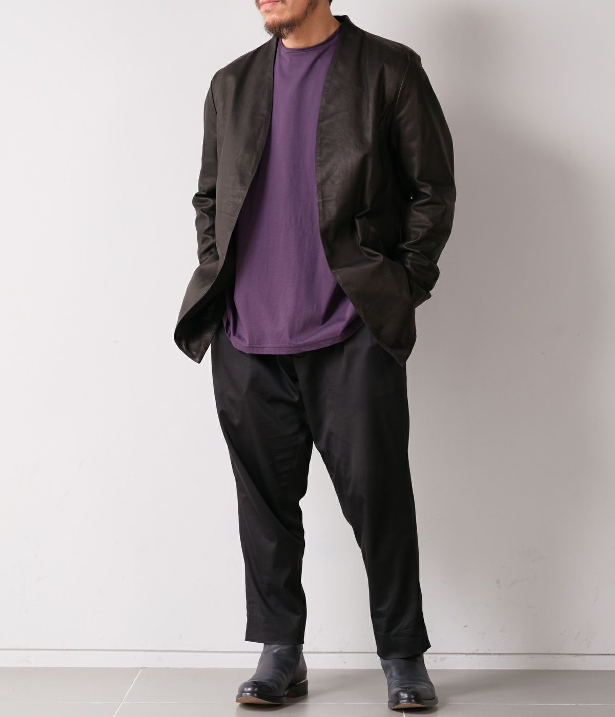 存在感のあるレザーカーディガン。やっぱりRIPVWNINWINKLEといえばレザーは欠かせないですよね。是非一度袖を通していただきたい大人のレザーカーディガンです。