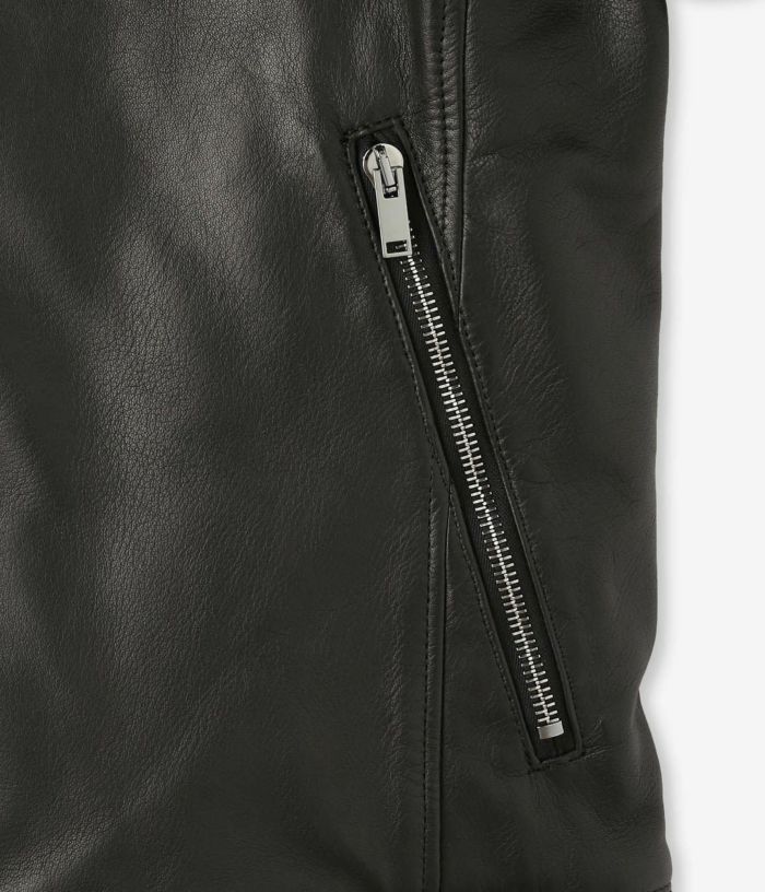 素材には、手袋用の革をベースにガーメント用へ改良した特注グローブレザーを採用。厚みを持ちながらも、驚くほど柔らかくふっくらとした質感が特徴。しっかりとしたシボ感と上品な光沢が共存し、着るほどに体に馴染むエイジングを楽しめます。柔軟かつ丈夫な性質で、長く愛用できる一着に。