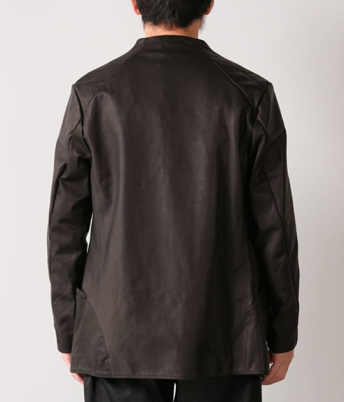 国内の牛原皮を使用し、ソフト鞣しの後、仕上げは顔料を一切使わずに染料のみで染革したRIPオリジナルレザー。とにかく馴染みやすい革で、着用する度に程良い微光沢が生まれるのも人気の特徴。ネック裏からアームに沿ってのステッチもワンポイントで◎