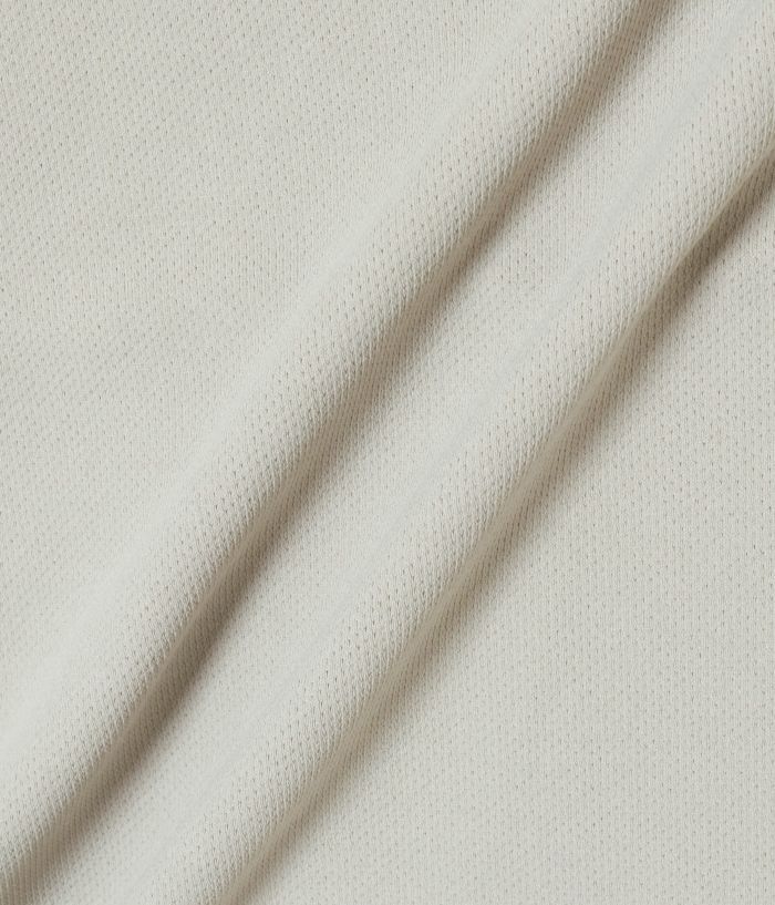 素材感のあるポリエステルの裏面を起毛させることでハリを持たせた素材を使い、極力シンプルなデザインの中にカッティングパターンでポケットを配置する事でデザインと実用性を兼ねたクルースエット型。