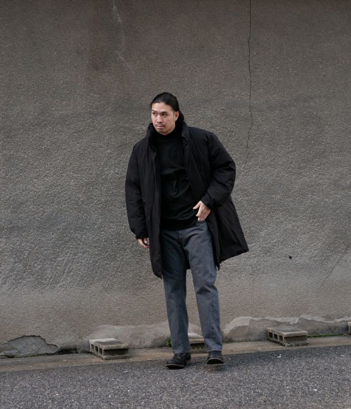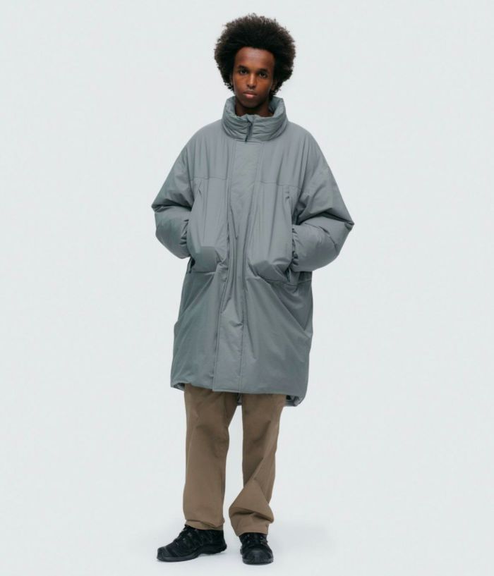 ダウンを筒状に包むことで、筒と筒の間に空気の層を作り、同じ分量のダウン製品よりも立体的なボリュームと暖かさを生んでいる。ウエストのドローコードで風の侵入を防ぐことができる。