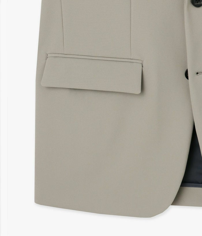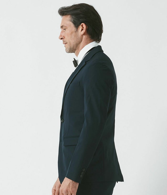 シルエットはタイトすぎない2Bジャケットをベースに、クラシックな雰囲気を感じさせるタイトすぎないラペルと短すぎない着丈。生地から感じるスポーティーさとシルエットから感じるフォーマルさが、モードなジャケットスタイルを可能にしています。