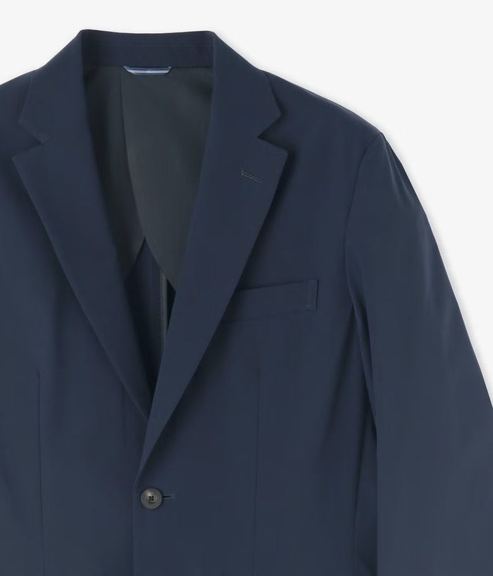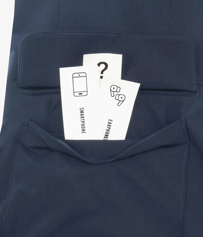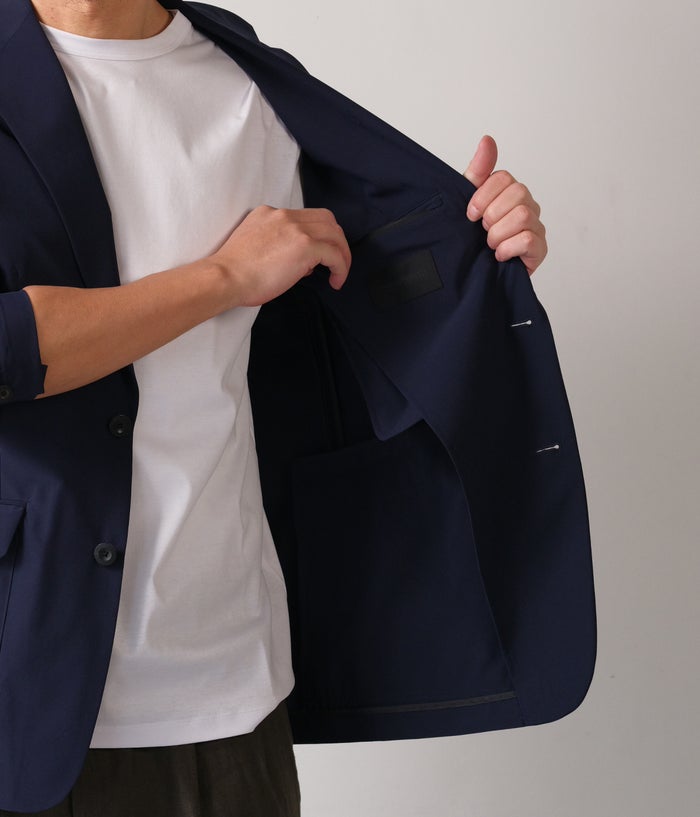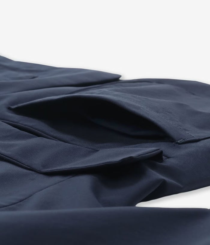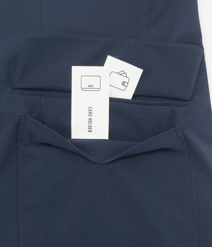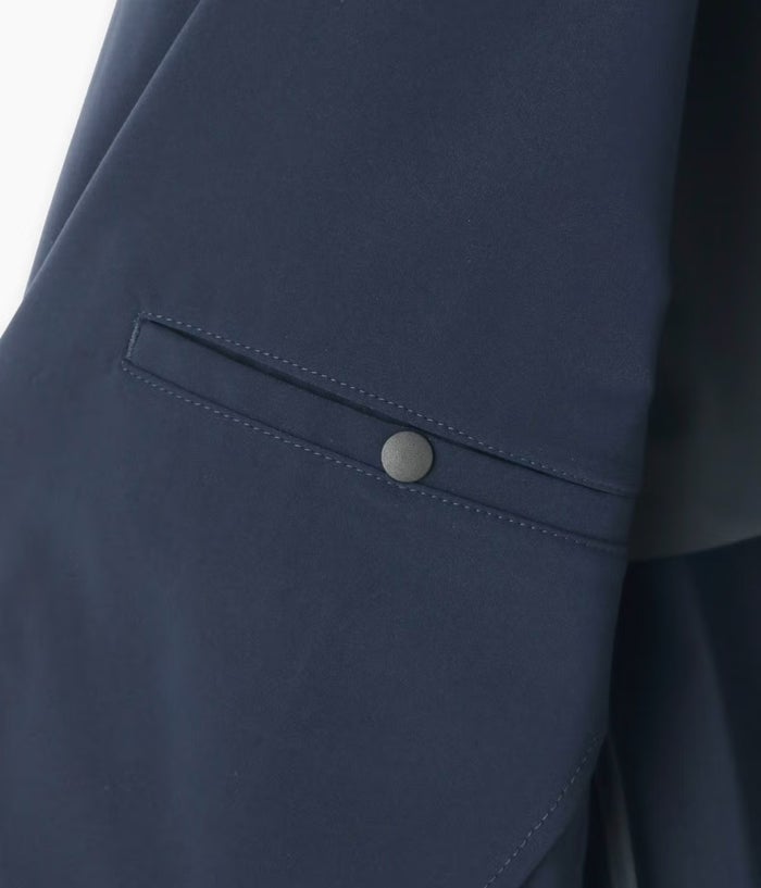 生地にはSOLOTEX ECO-Hybrid ストレッチタフタを採用。ソフトな肌触りとマルチハイストレッチ性で長時間着ても疲れにくく、リサイクル原料を使用したサスティナブル素材。軽量で機能性も高く、都会でのアクティブなシーンにぴったりです。